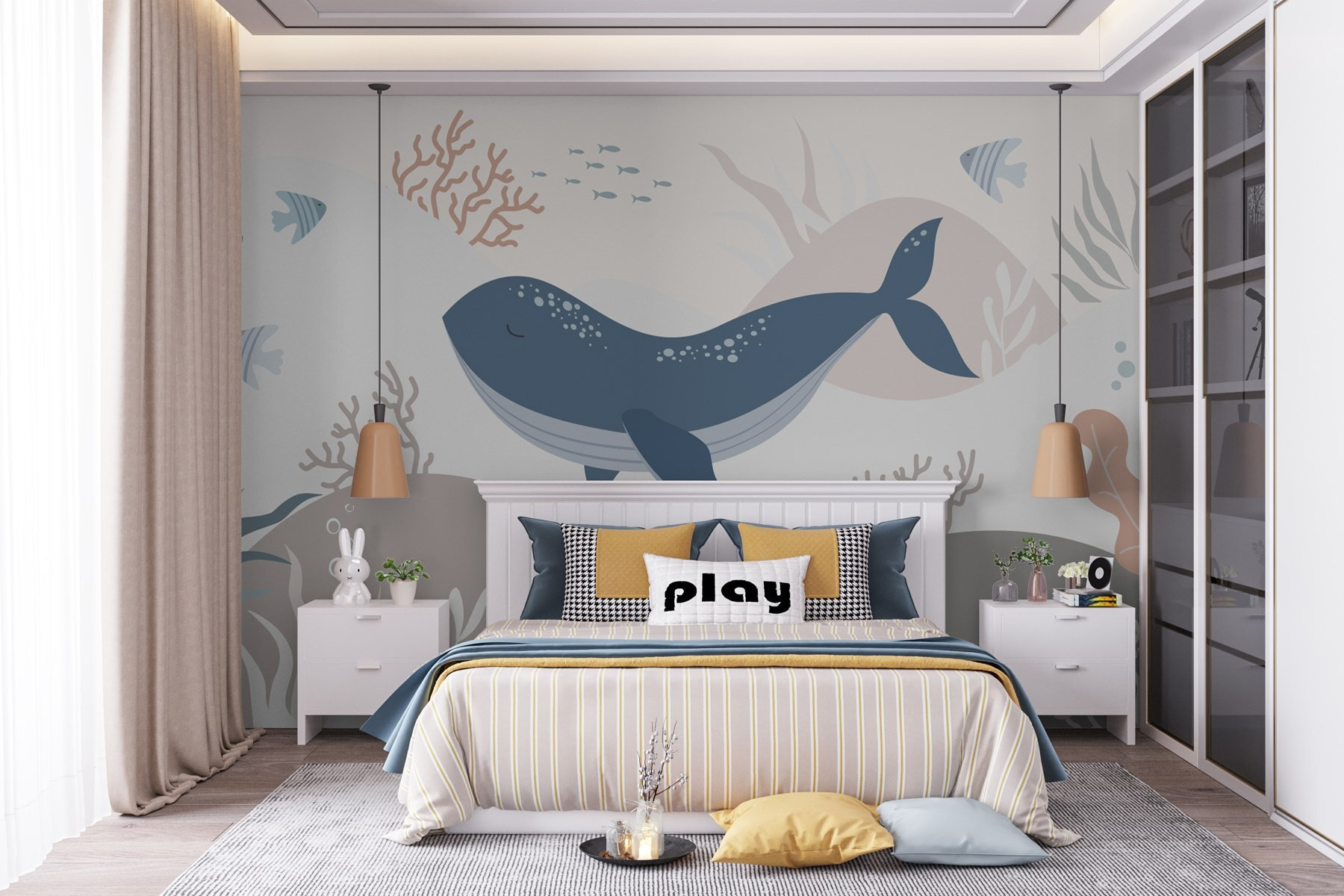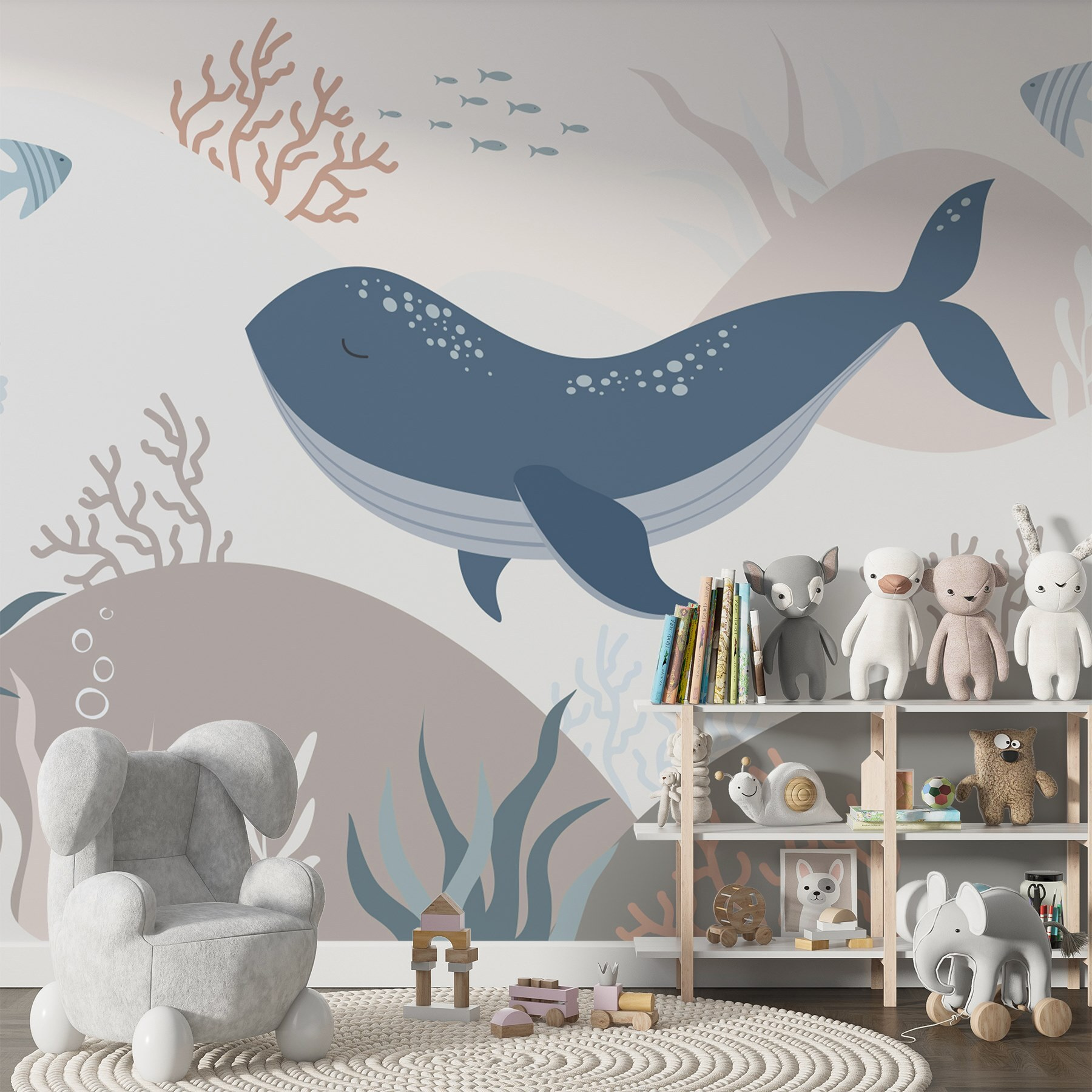 Imagínese una habitación acogedora con este impresionante mural “Ballena nadando en el océano”, es como tener una serena porción del mar justo en su pared. Perfecto para los amantes del océano y los soñadores por igual, este mural aporta un ambiente juguetón pero tranquilo, gracias a nuestro gentil gigante de las profundidades. Casi se puede oír el susurro de las olas y sentir la brisa marina. Es el tipo de obra de arte que hace que los espacios cobren vida, invitándote a sumergirte en la relajación y el asombro. Además, es un gran tema de conversación: ¿a quién no le gustaría charlar sobre ballenas paseando por el salón?