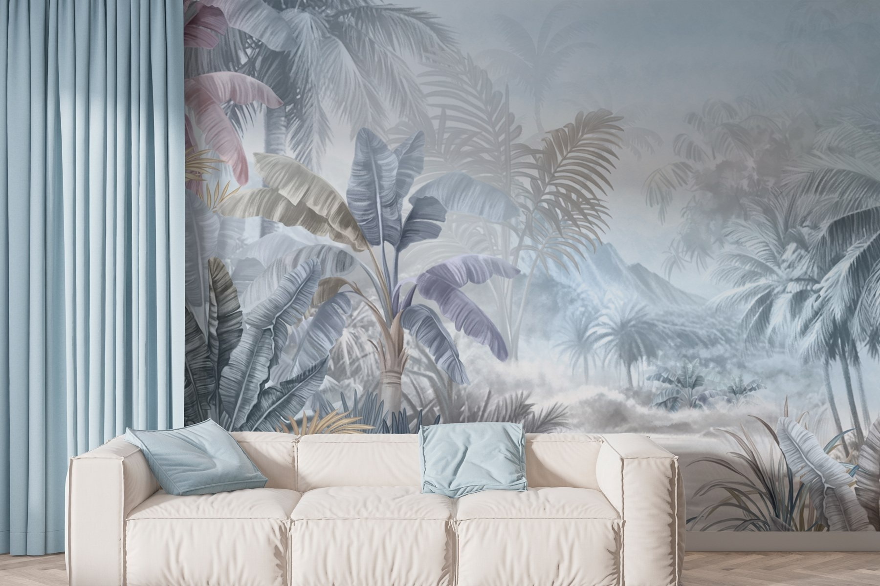 Transforme cualquier espacio en una escapada tranquila con este impresionante mural de selva. Imagínese entrar en una serena selva tropical donde las exuberantes hojas se mecen suavemente y los colores suaves crean una atmósfera relajante. Es como unas minivacaciones directamente en tu pared, ¡sin necesidad de billetes de avión! La delicada mezcla de azules, verdes y suaves pasteles resulta refrescante, casi como la bruma matinal de un paraíso tropical. Ya sea en un acogedor salón o en un dormitorio iluminado por el sol, este mural aporta vida y relajación a la habitación. Perfecto tanto para los amantes de la naturaleza como para los que sueñan despiertos. Además, invita a ese vecino que siempre dice que necesita más naturaleza en su vida. Ya sabes.