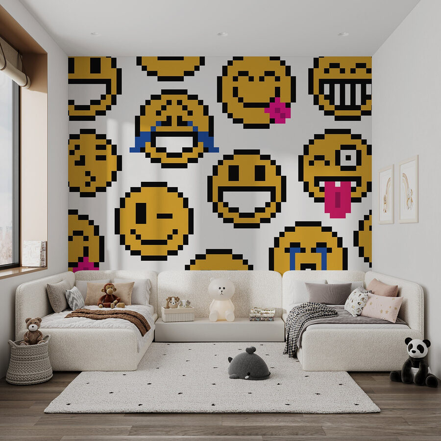 Aporta un toque de alegría a tu espacio con este peculiar mural de pared con un encantador grupo de caras sonrientes amarillas. Imagínatelo: entrar en una habitación y sentirte inmediatamente más ligero, rodeado de expresiones alegres que no pueden evitar hacerte sonreír. Es como una fiesta en las paredes, donde cada cara tiene su propio ambiente. Ya sea un guiño bobalicón o una amplia sonrisa, estos personajes cuentan sus propias historias. Perfecto para una oficina, la habitación de un niño o cualquier lugar que necesite buen humor, seguro que te arrancará una sonrisa, incluso en los días más difíciles. ¡Que empiece la diversión!