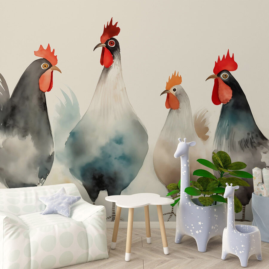 Alegra cualquier espacio con este encantador mural de pared que muestra una estrafalaria pandilla de gallinas, que lucen plumas rojas y blancas como si acabaran de salir de una pasarela de moda. Sus alegres personalidades añaden un toque de humor, convirtiendo una pared normal en un tema de conversación. Imagina que entras en una habitación y te reciben estos amigos emplumados: ¡es como tener una minigranja en casa! Perfecto para una cocina, un cuarto de juegos o cualquier lugar que necesite un poco de alegría, los colores suaves y el ambiente juguetón de este mural seguro que calientan los corazones. Además, ¿quién no sonreiría ante un escuadrón de gallinas? Es hora de dar la bienvenida a esta encantadora decoración.