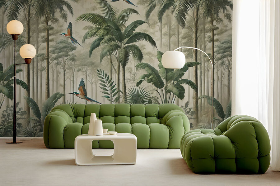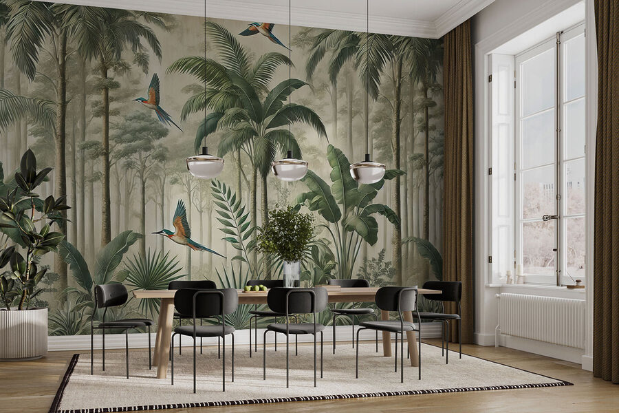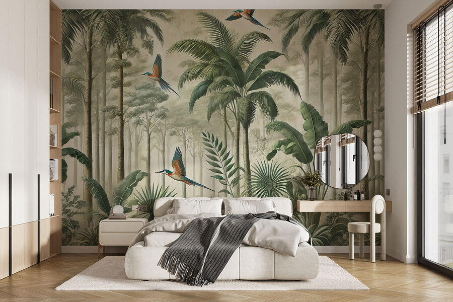 Transforme cualquier habitación en una escapada tranquila con este impresionante mural de pájaros sobrevolando un frondoso bosque. Imagina que entras y te sientes como si estuvieras en una selva serena, donde los colores vibrantes saltan y el aire está impregnado del aroma del follaje tropical. El vuelo juguetón de los pájaros añade un toque de fantasía, iluminando incluso los espacios más aburridos. Perfecto para crear un rincón de lectura acogedor o un refugio tranquilo, este mural susurra suavemente aventura y calma. Ideal para cualquiera que ame la naturaleza o simplemente necesite escapar un poco del ajetreo diario, porque ¿quién no quiere sentirse como en una escapada tropical? Así que, ¡deja que tus paredes canten y eleva tu espacio!
