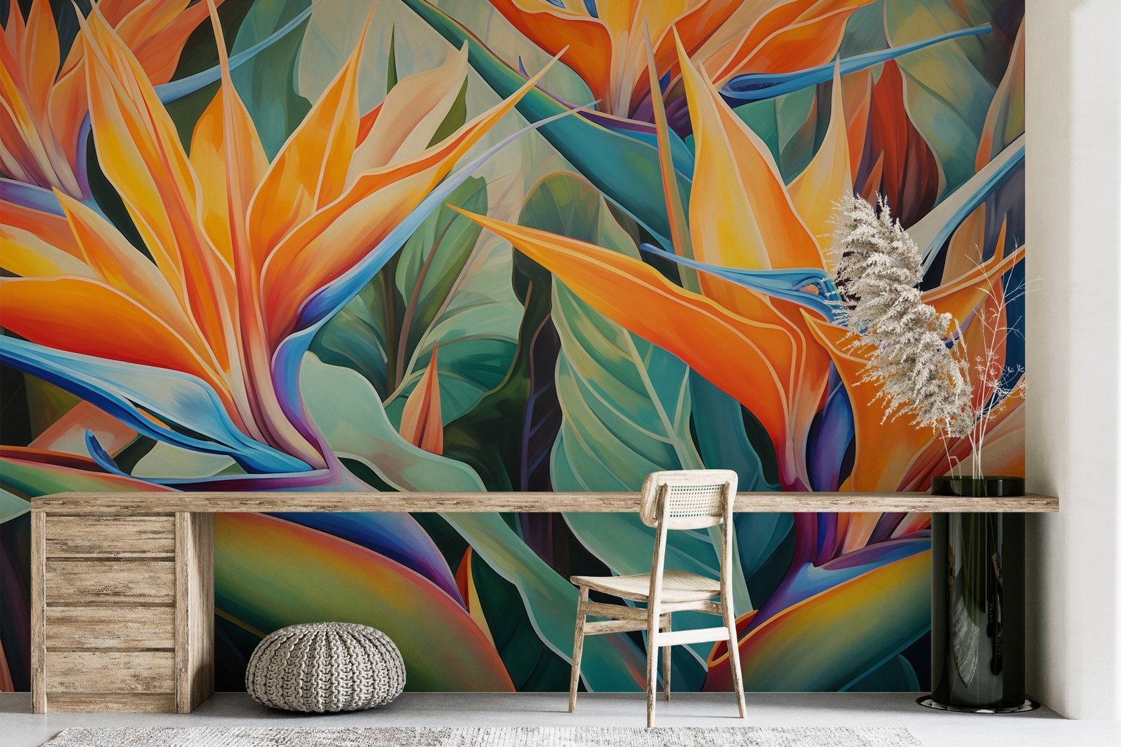 Transforme su espacio con el mural “Bright Blooms”, una vibrante explosión de color que prácticamente grita primavera. Imagínese esto: entrar en una habitación y ser recibido por la animada danza de flores naranjas y azules, cada pétalo parece susurrar secretos de brisas tropicales. Es como llevar un jardín al interior sin necesidad de tener un pulgar verde o regar de vez en cuando.