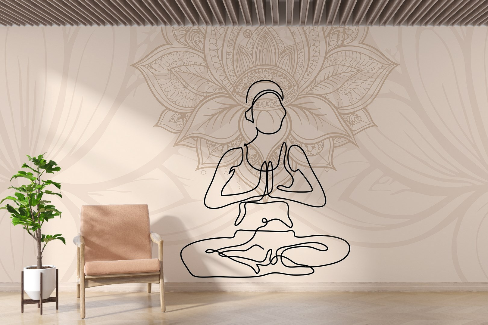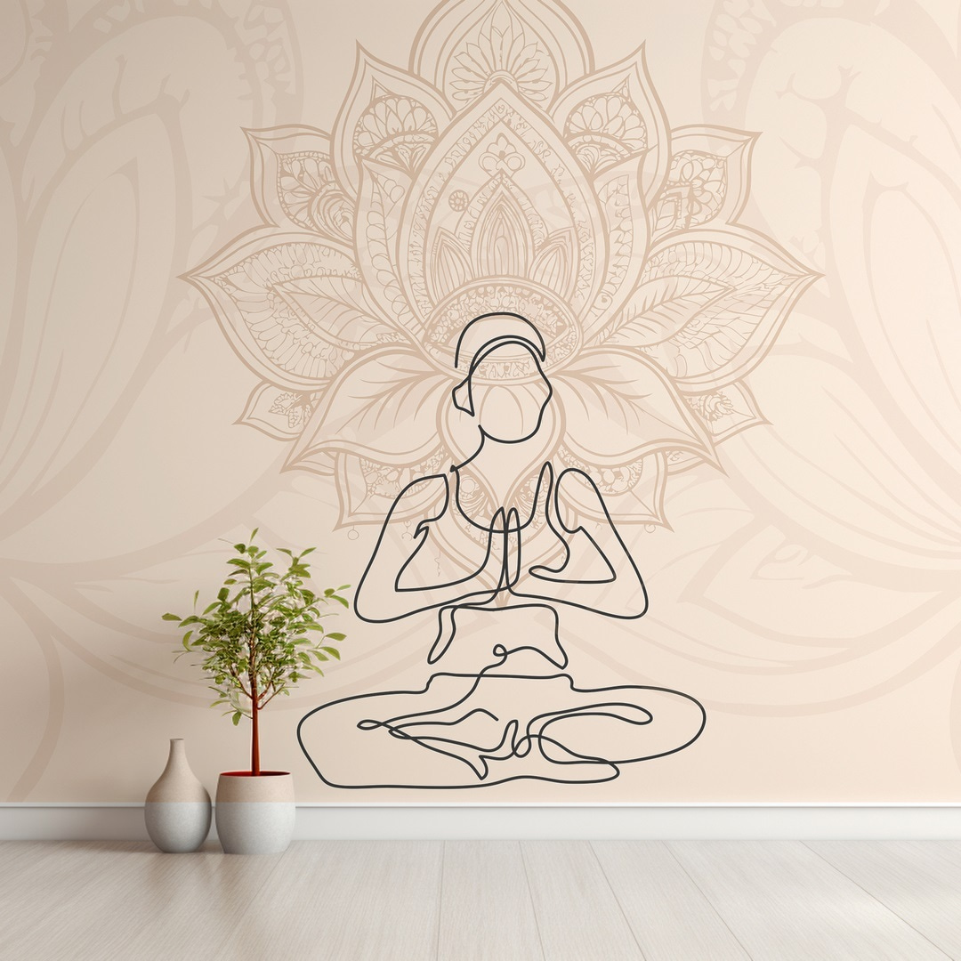 Transforma cualquier espacio en un oasis de serenidad con este impresionante mural de pared que muestra a una mujer en una tranquila postura de loto. Tiene ese delicado aire de acuarela, que invita a la paz y la calma como un cálido abrazo después de un largo día. Imagina que entras en tu salón y ahí está ella, irradiando buenas vibraciones e instándote a tomarte un respiro. Los intrincados detalles del loto detrás de ella añaden un toque de elegancia, perfecto para un acogedor rincón de lectura o un rincón de yoga. Este mural no es sólo decoración; es un suave recordatorio para relajarse y reconectar con uno mismo. Es como tener un maestro zen personal en la pared.