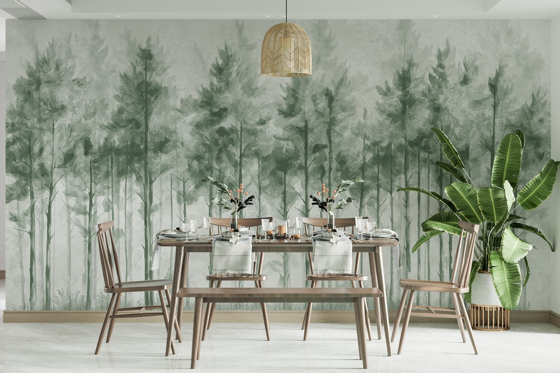 Transforme una pared lisa en una escapada serena con este mural “Grupo de árboles en un bosque”. Imagínese adentrarse en un apacible bosque, donde los suaves verdes y la delicada bruma le invitan a respirar hondo y relajarse. Es como llevar un trozo de naturaleza al interior, ¡sin bichos ni botas embarradas! Perfecto para un acogedor rincón del salón o un tranquilo dormitorio, este mural susurra tranquilidad. Imagínate tomando un café mientras contemplas esos árboles y dejas que tu mente divague por tranquilos senderos forestales. Un poco de naturaleza puede hacer maravillas para el alma.