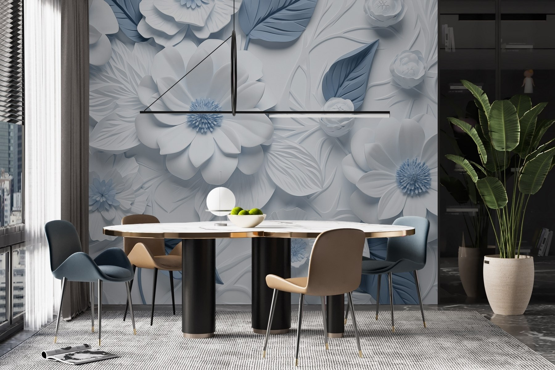 Transforme cualquier habitación en una escapada serena con este encantador mural de pared con preciosas flores blancas y azules. Es como adentrarse en un tranquilo jardín, en la comodidad del hogar. Los intrincados detalles de las flores y las hojas crean un ambiente refrescante, despertando la imaginación de días soleados y brisas suaves. Imagina un rincón de lectura acogedor o un salón animado realzado por este toque artístico. Sus amigos se detendrán en mitad de una conversación para admirarlo. No es sólo decoración; es un sentimiento: tranquilizador, estimulante y perfecto para soñar despierto.