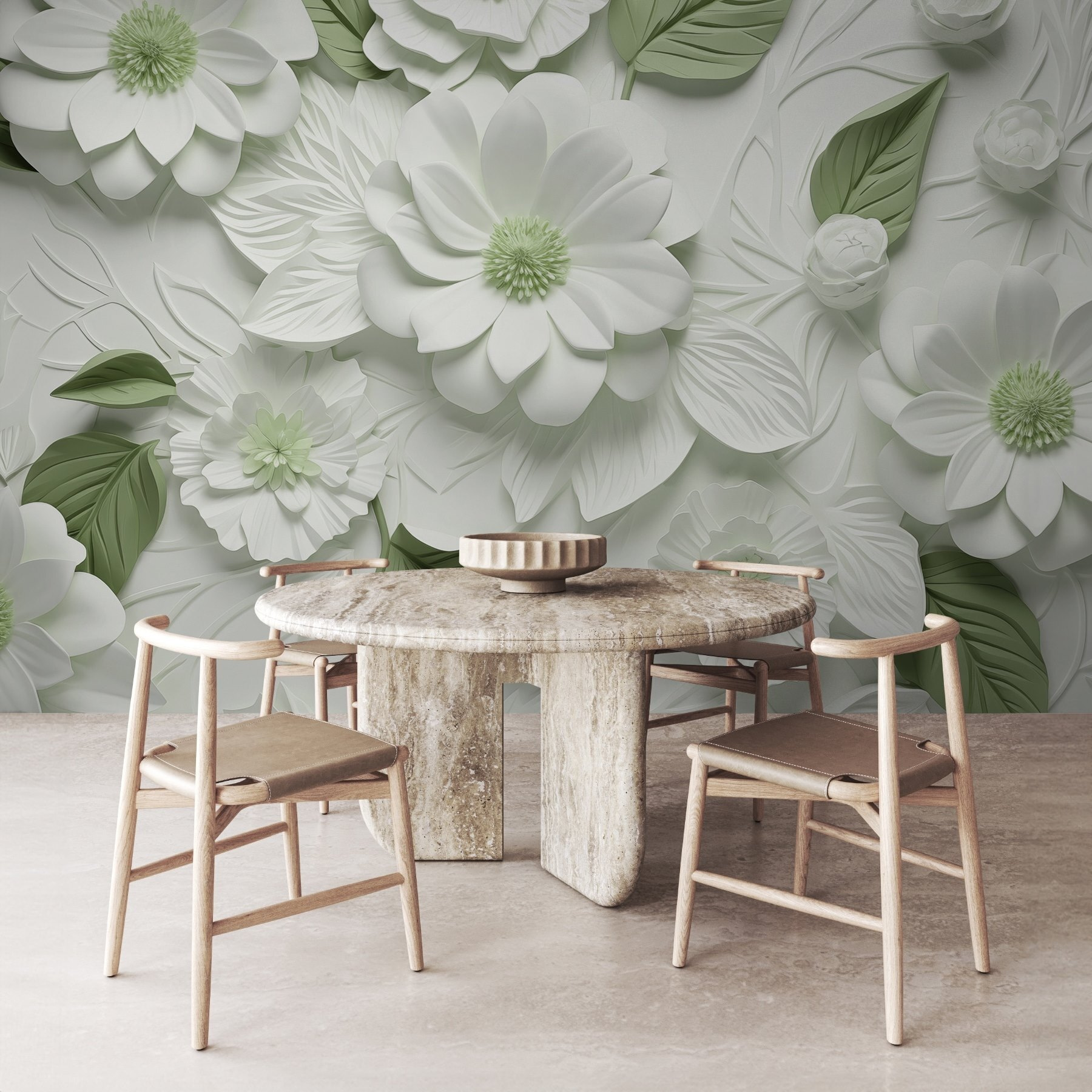 Transforme cualquier habitación en un oasis de serenidad con este impresionante mural de pared con delicadas flores blancas y verdes. Es como llevar un jardín al interior, sin los molestos insectos. Imagínese tomando café en un rincón iluminado por el sol, rodeado de flores que nunca se marchitan. Los intrincados diseños combinan la elegancia con un toque de fantasía, haciendo que cada mirada sea como una pequeña escapada. Perfecto para esa pared en blanco que susurra un poco de amor o incluso un acento para animar las cosas. La belleza de la naturaleza en casa, sin necesidad de ser jardinero: ¿quién no querría eso?