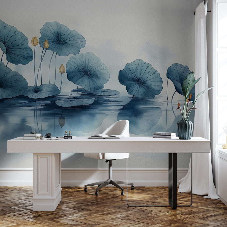 Transforme cualquier espacio con este encantador mural de nenúfares flotando con gracia en azules suaves. Imagínese entrar en una habitación y sentir al instante que ha entrado en un estanque sereno; en serio, ¿quién no necesita ese ambiente? El suave efecto de acuarela aporta un encanto apacible, por lo que es perfecto para un dormitorio o un rincón de lectura acogedor. Imagínate tomando el té, soñando despierto mientras la tranquila escena calma la mente. Es como el arte de la naturaleza, ¡pero sin bichos ni barro! Este mural hará que las paredes digan mucho de su estilo único, al tiempo que añade un toque de tranquilidad y un toque de fantasía.