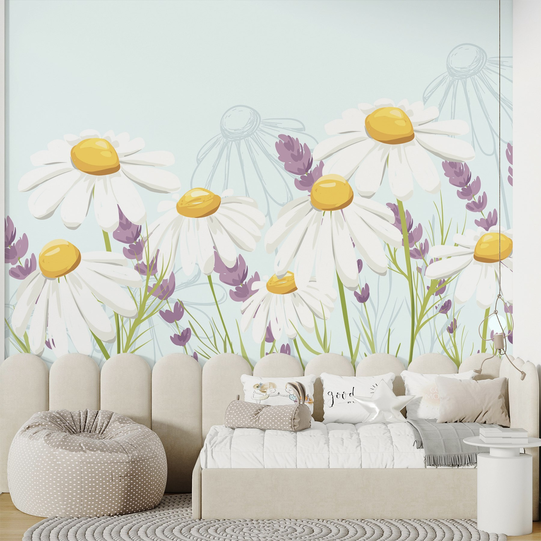 Imagínese esto: un susurro de brisa en una tarde cálida, la luz del sol entrando por la ventana y, justo ahí, en la pared, un impresionante mural de flores blancas bailando con ramitas de lavanda. Este mural no es sólo decoración; ¡es como llevar un jardín al interior sin la regadera! Imagínese la alegría de despertarse con flores brillantes saludándole a diario. Añade un toque de alegría, perfecto para tomar un café y soñar con aventuras o simplemente para disfrutar del ambiente hogareño. Además, ¿esos colores? Son un suave recordatorio de la paz de la naturaleza, transformando cualquier espacio en un refugio sereno. ¿Quién no querría eso?