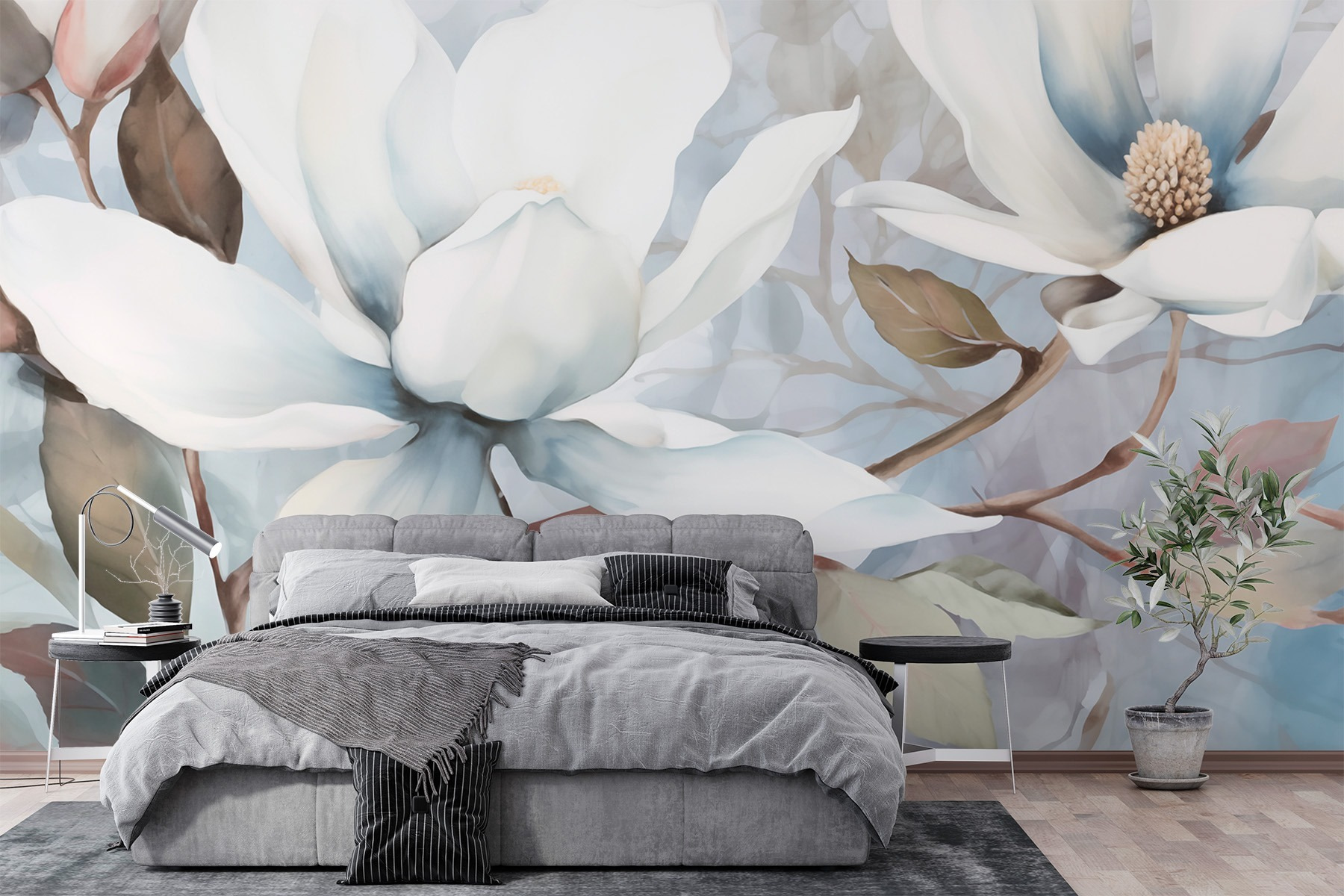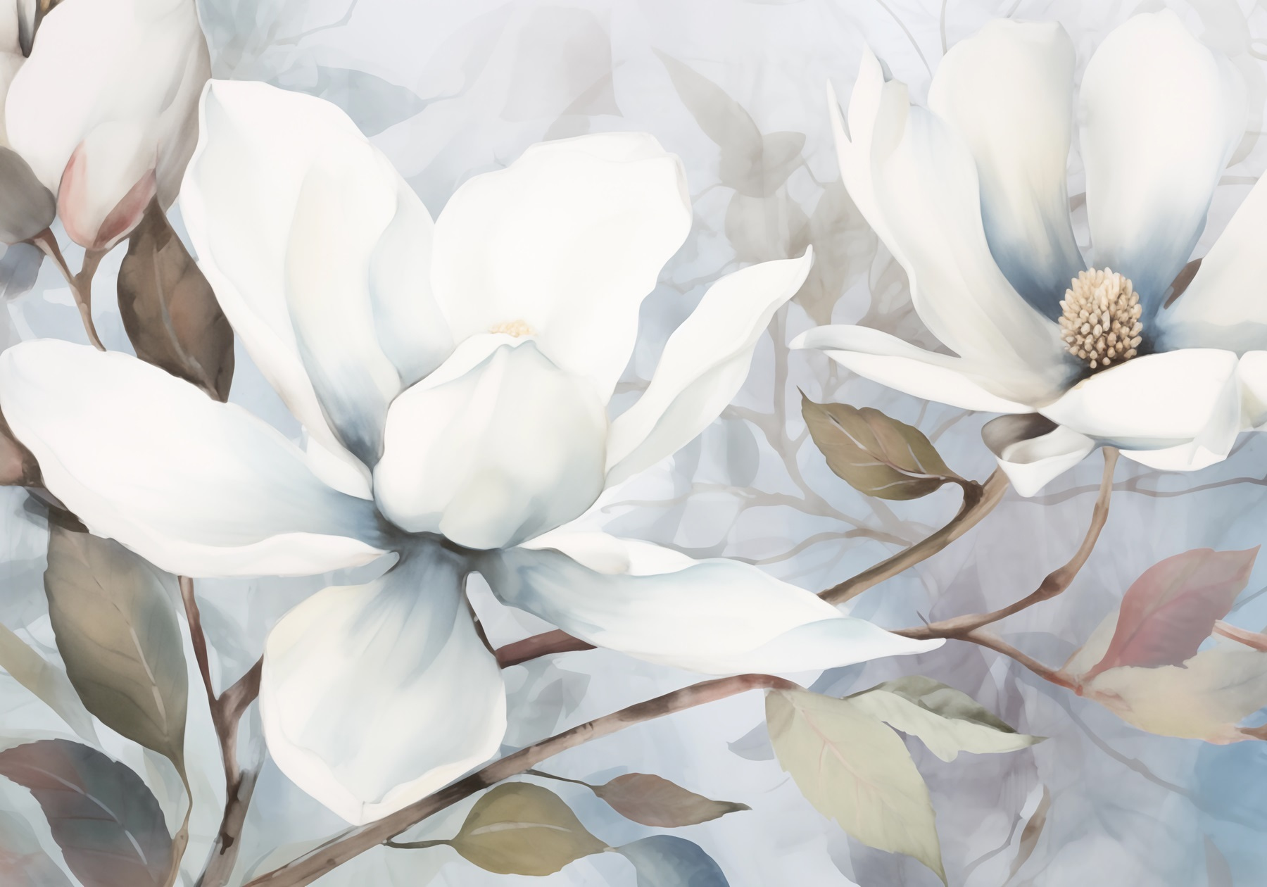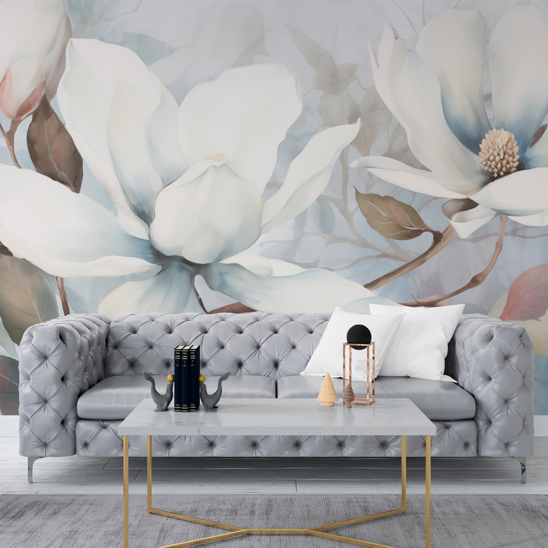 Transforme su espacio con este impresionante mural de pared con elegantes flores blancas. Imagínese entrar en una habitación donde las suaves flores de acuarela le dan la bienvenida como una suave brisa. Es como tener un jardín en casa, ¡sin el molesto polen! Perfecto para un salón, un dormitorio o incluso un estudio creativo, este mural añade un toque de tranquilidad y sofisticación. Imagínese tomando su café matutino mientras disfruta de la serena belleza. Cada mirada a esas delicadas flores es como una pequeña escapada, un recordatorio del encanto puro de la naturaleza. ¿Quién diría que la decoración podría ser tan refrescante?