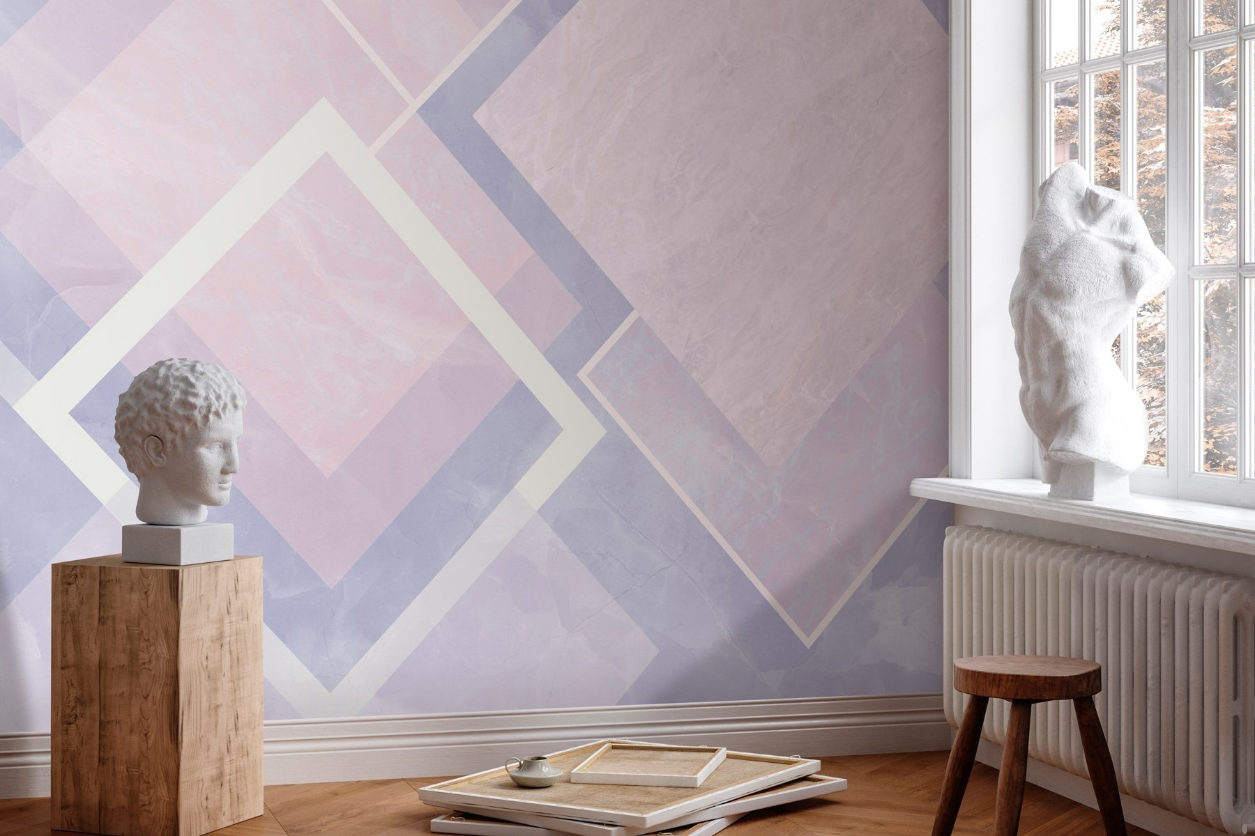 Transforma tu espacio con este encantador mural de suaves motivos geométricos en tonos pastel. Es como un abrazo relajante para sus paredes, perfecto para crear un refugio tranquilo del caos de la vida diaria. Imagínatelo: tomando el té en una tarde acogedora, rodeado de suaves tonos que te recuerdan a los atardeceres de algodón de azúcar. Cada forma baila por la pared, aportando una sensación de armonía que puede hacer que cualquier habitación resulte más acogedora. Tanto si se trata de un rincón de lectura como de ese rincón inesperado que siempre has querido arreglar, este mural añade el toque perfecto. ¿A quién no le gustaría escaparse a un país de las maravillas geométrico?
