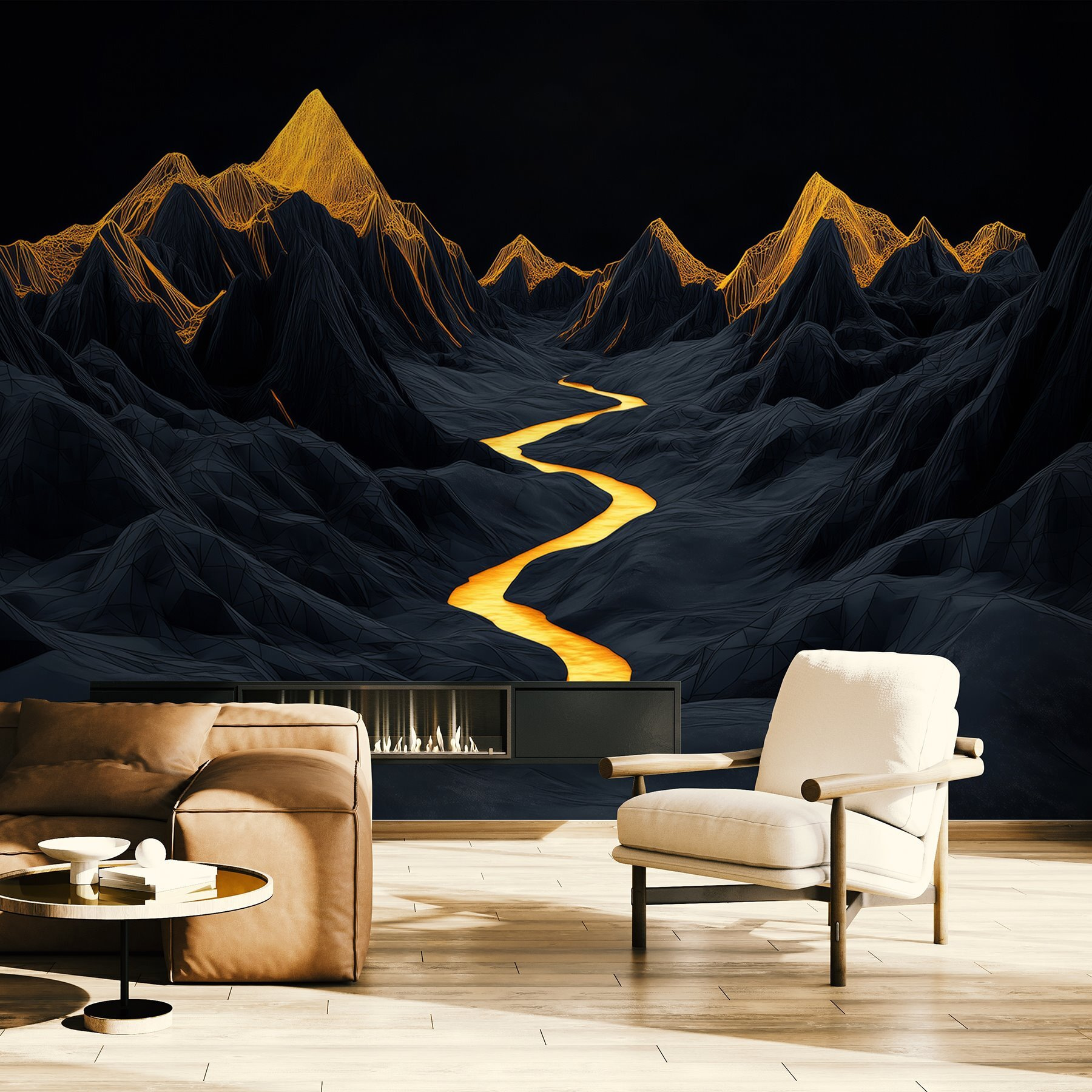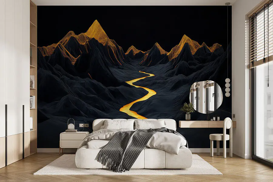 Transforme cualquier espacio en una escapada serena con este impresionante mural que representa un río serpenteando entre majestuosas montañas. Imagínese tomando una bebida caliente mientras contempla el río dorado que brilla contra los picos oscuros y dramáticos, es como llevar la naturaleza a su sala de estar. Perfecto para cualquiera que sueñe con aventuras o simplemente necesite un rincón tranquilo para relajarse. Ya sea el punto focal de la habitación o un sutil telón de fondo para la vida diaria, este mural añade un toque de naturaleza salvaje sin necesidad de equipo de senderismo. Imagínatelo: noches acogedoras, luz suave y esas preciosas vistas todos los días.