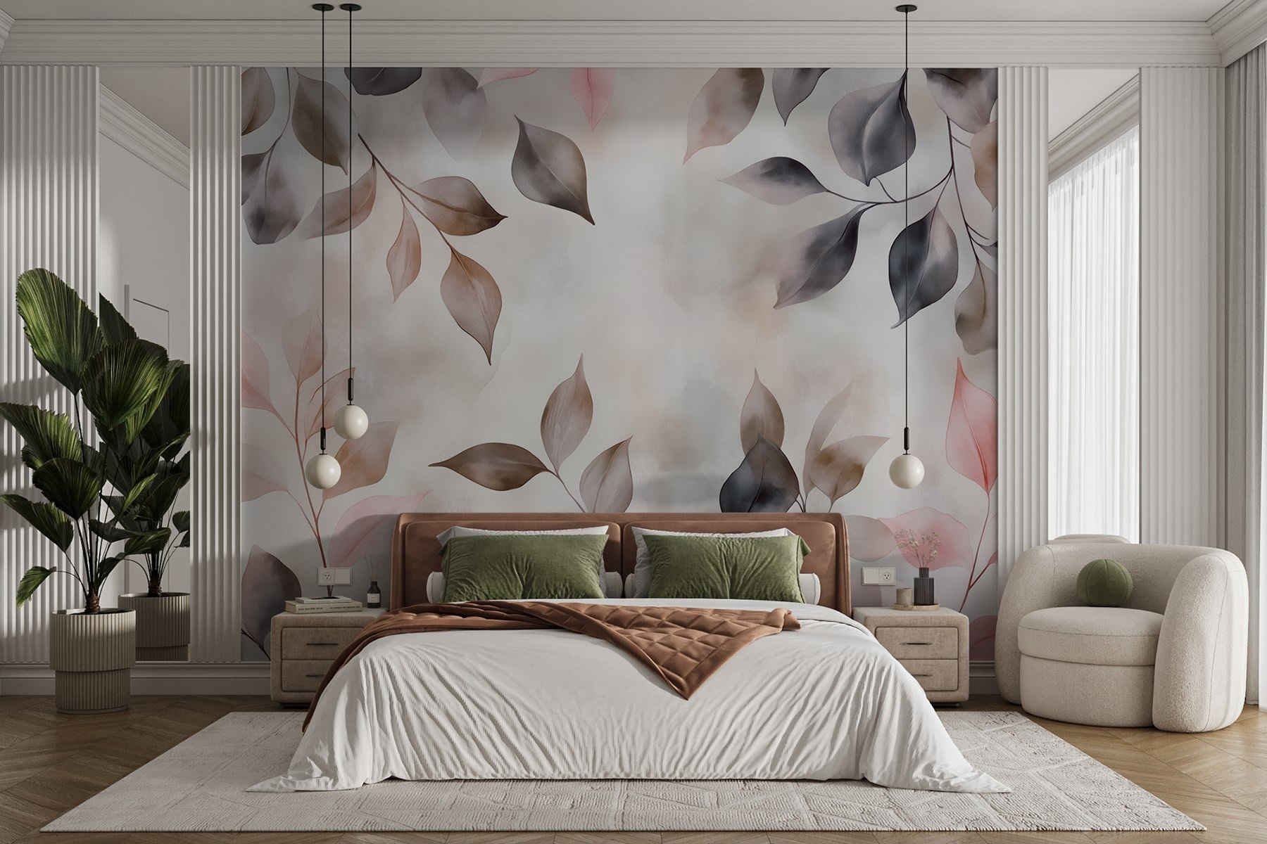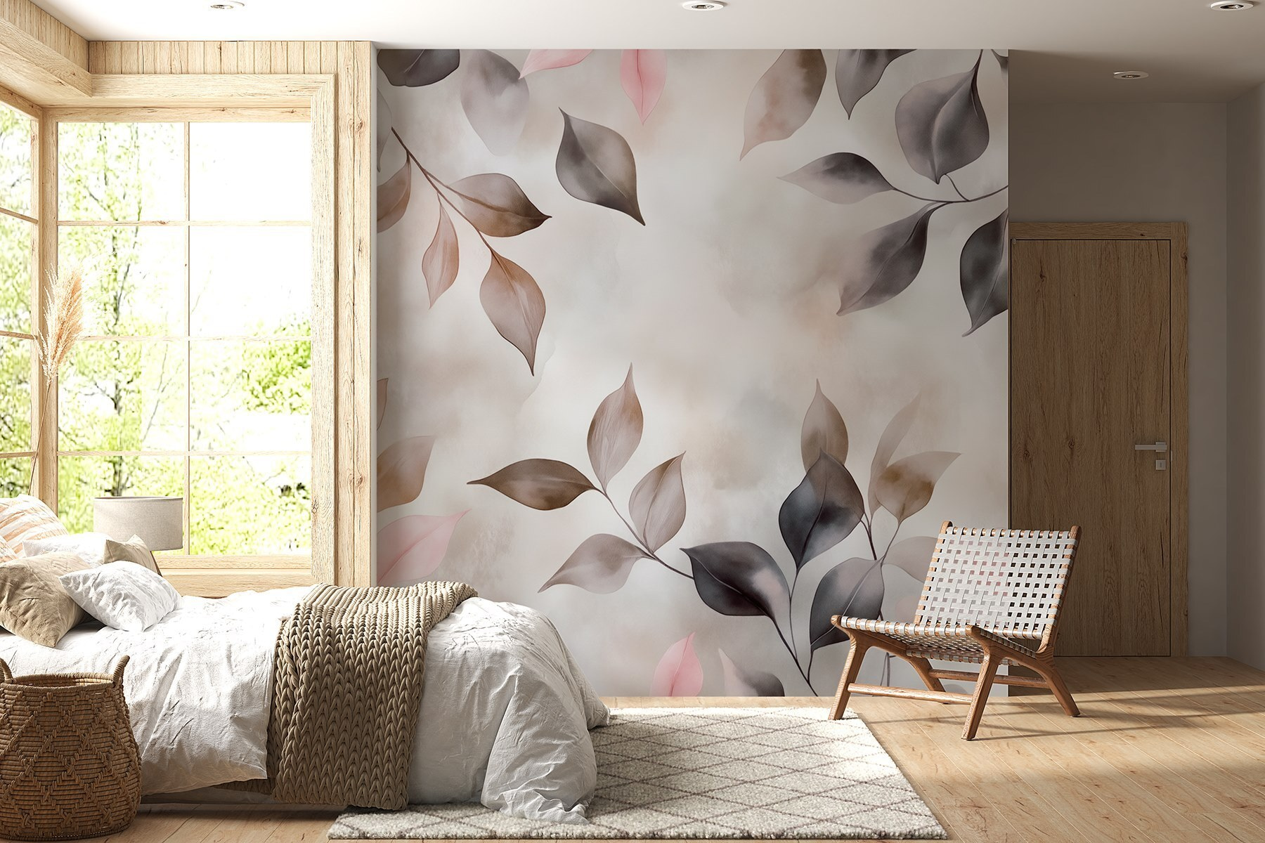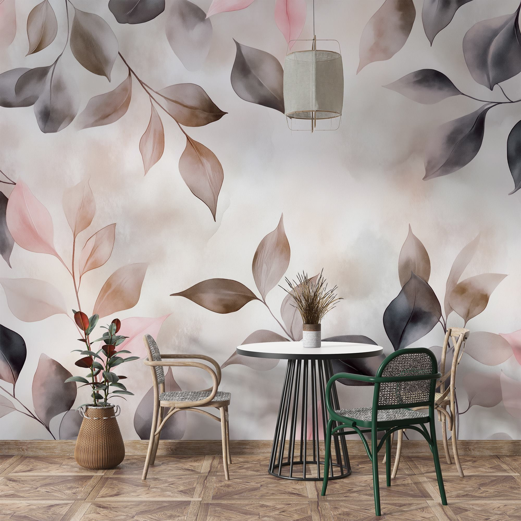 Transforma cualquier habitación en un refugio acogedor con “Hojas delicadas en tonos suaves”. Este mural lleva la belleza de la naturaleza al interior, envolviendo su espacio en relajantes tonos pastel y sutiles sombras. Imagínese tomando una taza de té mientras disfruta del suave ambiente que crea. Es como tener una serena pared de jardín, ¡sin el trabajo de jardinería! El estilo acuarela añade un toque de ensueño, perfecto para soñar despierto o simplemente para tomarse un momento de relajación. Además, es un gran tema de conversación: tus invitados se preguntarán de qué color son esas misteriosas hojas. En resumen, el encanto de la naturaleza al alcance de tu mano, listo para elevar cualquier pared.