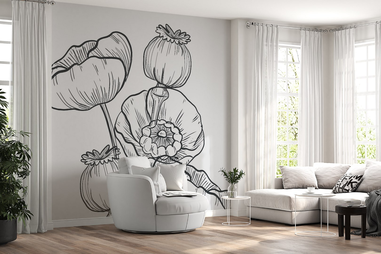 Ilumine cualquier habitación con este impresionante mural de pared con intrincados dibujos de flores sobre un fondo blanco nítido. Es como invitar a un jardín a su casa sin tener que preocuparse de regarlo, ¡sin duda una ventaja! Imagínese tomando su café matutino sintiéndose rodeado de naturaleza, aunque tenga vistas urbanas. Cada pétalo y capullo del diseño cuenta una historia de belleza y calma, perfecta para crear un rincón sereno donde relajarse. Además, es un tema de conversación: ¿quién no querría hablar de ese precioso ambiente floral? Transforma tu espacio y deja que las flores hablen por ti.