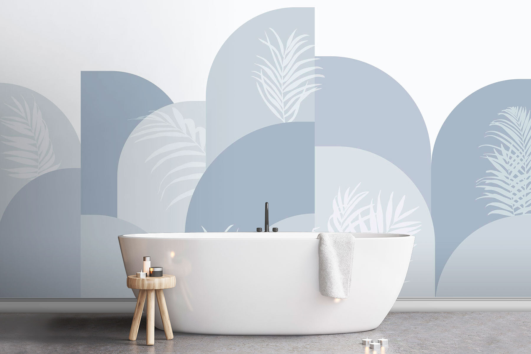 Fotomurales Hojas blancas sobre fondo azul (SKU: w02101v3)