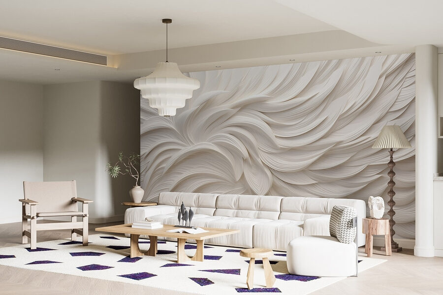 Transforme su espacio con este mural de ensueño que parece un suave abrazo. Imagínese un lienzo blanco en el que las formas delicadas y fluidas crean un ambiente sereno, como plumas que se dejan llevar suavemente por la brisa. Esto no es sólo un telón de fondo, es una experiencia. Imagínese que se despierta cada mañana con este relajante paisaje o que se acurruca en el sofá y se siente “zen” con sólo mirarlo. También es versátil, encaja a la perfección en un acogedor salón, en un elegante despacho o incluso en ese rincón de lectura que necesita un poco de amor. Añade un toque de fantasía y tranquilidad a tus paredes y observa cómo se despliega la magia.
