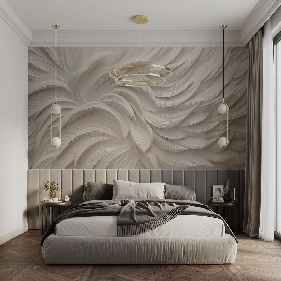 Transforme su espacio con este mural de ensueño que parece un suave abrazo. Imagínese un lienzo blanco en el que las formas delicadas y fluidas crean un ambiente sereno, como plumas que se dejan llevar suavemente por la brisa. Esto no es sólo un telón de fondo, es una experiencia. Imagínese que se despierta cada mañana con este relajante paisaje o que se acurruca en el sofá y se siente “zen” con sólo mirarlo. También es versátil, encaja a la perfección en un acogedor salón, en un elegante despacho o incluso en ese rincón de lectura que necesita un poco de amor. Añade un toque de fantasía y tranquilidad a tus paredes y observa cómo se despliega la magia.