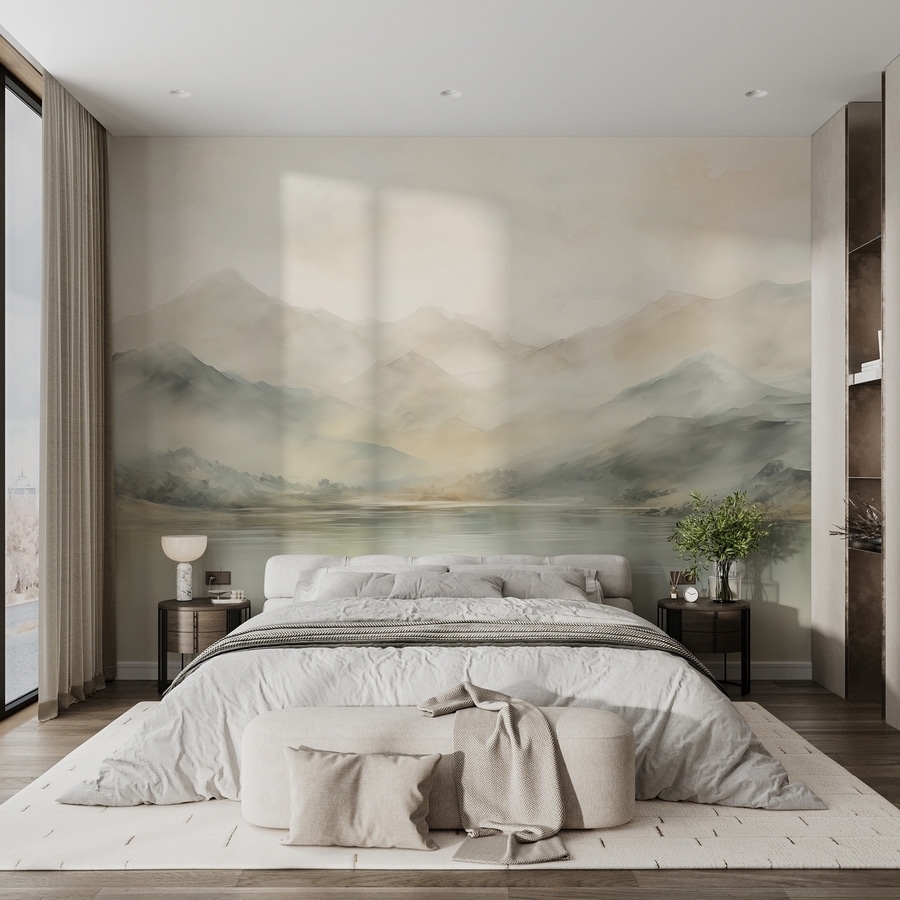 Transforme cualquier pared en una escapada serena con este impresionante mural de agua y montañas lejanas. Imagine contemplar tonos suaves que se mezclan, presentando una escena tranquila, casi onírica. Es como unas vacaciones en miniatura directamente en su salón. Perfecto para relajarse después de un largo día o para empezar a soñar con aventuras de senderismo. Las suaves pinceladas evocan sentimientos de paz, ideales para un acogedor rincón de lectura o incluso para una animada cena. Imagínese cómo fluyen las conversaciones mientras esta belleza crea el telón de fondo perfecto. No es sólo decoración; es una invitación a relajarse.
