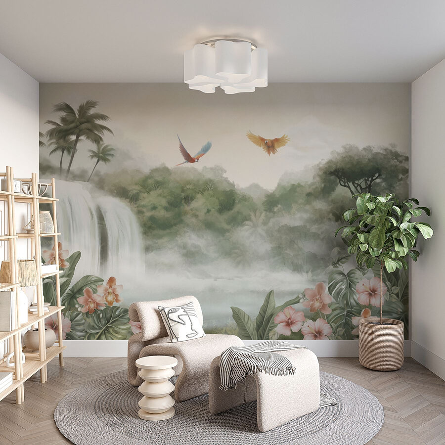 Transforme cualquier espacio en un sereno paraíso tropical con este impresionante mural de cascada con vibrantes pájaros que se elevan sobre una exuberante vegetación. Imagina entrar en un oasis de paz todos los días mientras el suave sonido del agua en cascada llena tu mente. Las delicadas flores rosas se asoman entre el follaje, añadiendo un toque de color que es perfecto para iluminar un rincón acogedor o hacer una declaración audaz en una pared. Es como llevar un trozo de naturaleza al interior, ¡sin necesidad de botas de montaña! Ideal para los amantes de la naturaleza, este mural le invita a hacer una pausa, respirar y disfrutar de un pedacito de tranquilidad en casa. Además, puede que le haga soñar con unas vacaciones tropicales, aunque fuera haga frío por la tarde. Disfrute de la belleza y deje que sus paredes cuenten una historia.