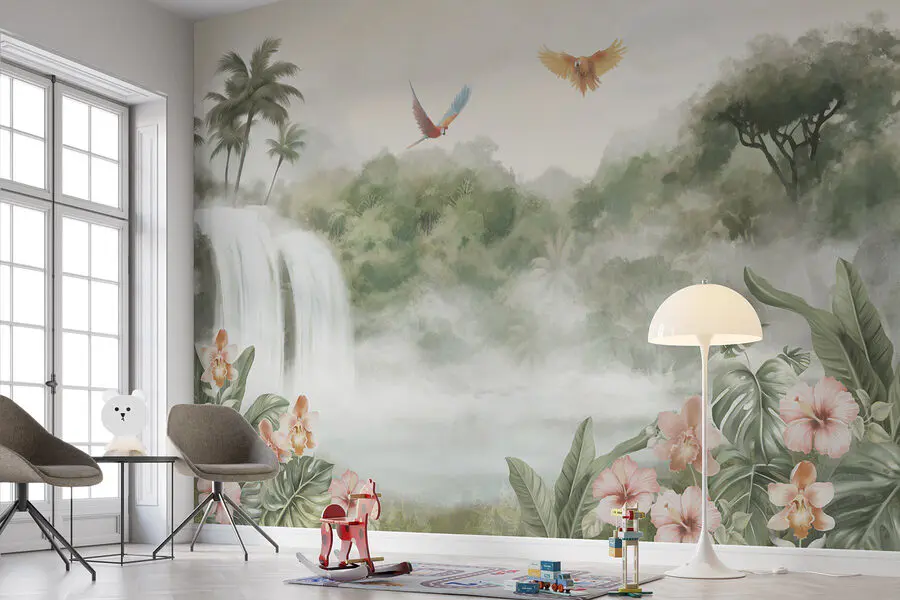 Transforme cualquier espacio en un sereno paraíso tropical con este impresionante mural de cascada con vibrantes pájaros que se elevan sobre una exuberante vegetación. Imagina entrar en un oasis de paz todos los días mientras el suave sonido del agua en cascada llena tu mente. Las delicadas flores rosas se asoman entre el follaje, añadiendo un toque de color que es perfecto para iluminar un rincón acogedor o hacer una declaración audaz en una pared. Es como llevar un trozo de naturaleza al interior, ¡sin necesidad de botas de montaña! Ideal para los amantes de la naturaleza, este mural le invita a hacer una pausa, respirar y disfrutar de un pedacito de tranquilidad en casa. Además, puede que le haga soñar con unas vacaciones tropicales, aunque fuera haga frío por la tarde. Disfrute de la belleza y deje que sus paredes cuenten una historia.