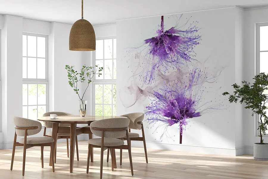 Transforme cualquier espacio en un jardín de ensueño con el mural de pared “Flores moradas con salpicaduras moradas”. Imagínese paseando por un campo de lavanda, donde cada mirada a este mural trae una sonrisa. Sus tonos vibrantes y sus alegres salpicaduras crean una sensación de alegría, perfecta para esos días en los que la vida necesita un poco de ánimo. Imagínatelo en un acogedor rincón de lectura o en una animada cocina, donde suscita conversación y calidez. Cada pincelada parece susurrar secretos de la naturaleza, haciéndote sentir conectado y en paz. Eso sí que es serenidad instantánea. Es como llevar la belleza de la naturaleza al interior, ¿a quién no le gustaría?