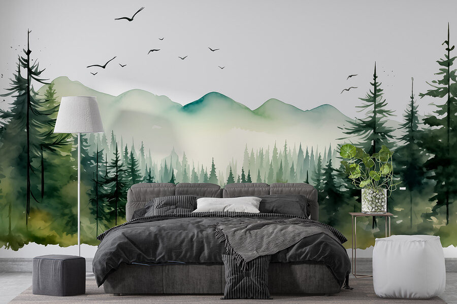 Transforme cualquier espacio en una serena escapada al bosque con este impresionante mural de acuarela de un bosque y montañas. Imagínatelo: entras en tu habitación y, ¡ZAS!, te sientes como si estuvieras en plena naturaleza, con exuberantes verdes y azules brumosos que te envuelven como una acogedora manta. Cada mirada trae un poco de aire fresco, tal vez incluso el leve gorjeo de los pájaros, bueno, tal vez no, pero seguro que se siente de esa manera. Perfecto para un salón o un dormitorio, este mural susurra tranquilidad. Es como tener un trozo de naturaleza en la pared, sin necesidad de botas de montaña. Imagínese tomándose el café de la mañana delante de él: un placer, ¿verdad? Así que, adelante, deje entrar la naturaleza, ¡sus paredes se lo agradecerán!