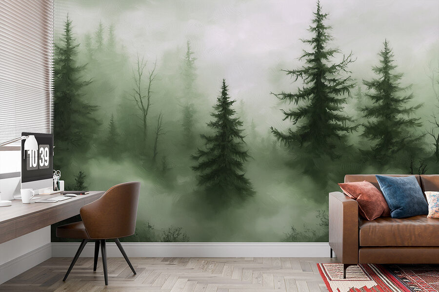Adéntrese en una escapada de ensueño con el mural “Bosque brumoso con árboles”. Imagínese tomando el café de la mañana rodeado de un tranquilo bosque brumoso, donde esos imponentes árboles parecen susurrar secretos. Este diseño trae un trozo de naturaleza a su hogar, perfecto para crear un rincón acogedor o un refugio tranquilo. Los verdes apagados y las texturas suaves invitan a la calma, casi como un abrazo de la Madre Naturaleza. Además, ¡no necesitas botas de montaña ni insecticida! Siéntate, relájate y deja que tus paredes hablen por ti.