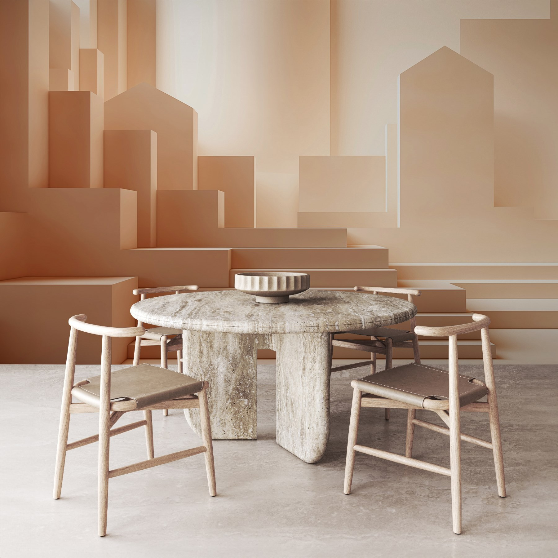 Entre en un mundo de creatividad con este impresionante mural de pared, “Conjunto de escaleras en una habitación”. Imagínelo transformando su espacio en una escapada de ensueño, donde la sencillez se une a la elegancia. Los tonos suaves y cremosos y las formas geométricas crean un ambiente acogedor, perfecto para tomar un café en un domingo perezoso o para recibir a los amigos. Imagina este mural como telón de fondo para esos momentos entrañables, como fiestas de baile improvisadas o rincones acogedores para leer. Es como un susurro de arte moderno que hace que las paredes cobren vida. Eleve su hogar con este toque único que seguro que provocará conversaciones y puede que incluso un poco de envidia.