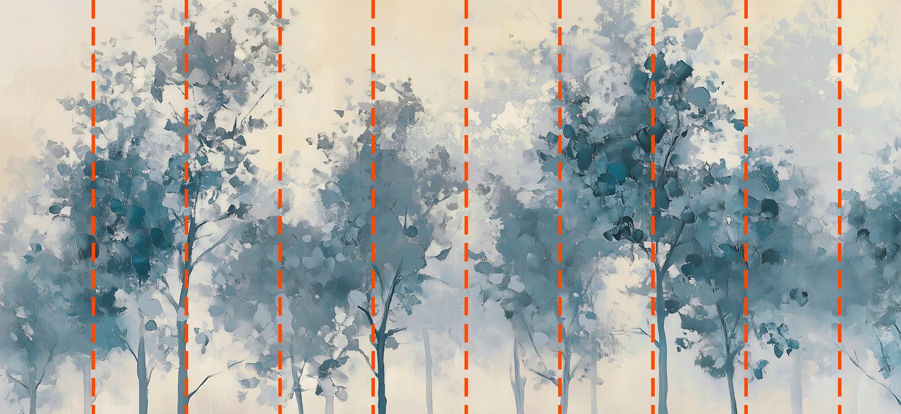 Tu papel pintado se preparará según las dimensiones que nos hayas facilitado durante el proceso de pedido. El lienzo se dividirá en cómodas secciones de hasta 50 cm de ancho cada una.
