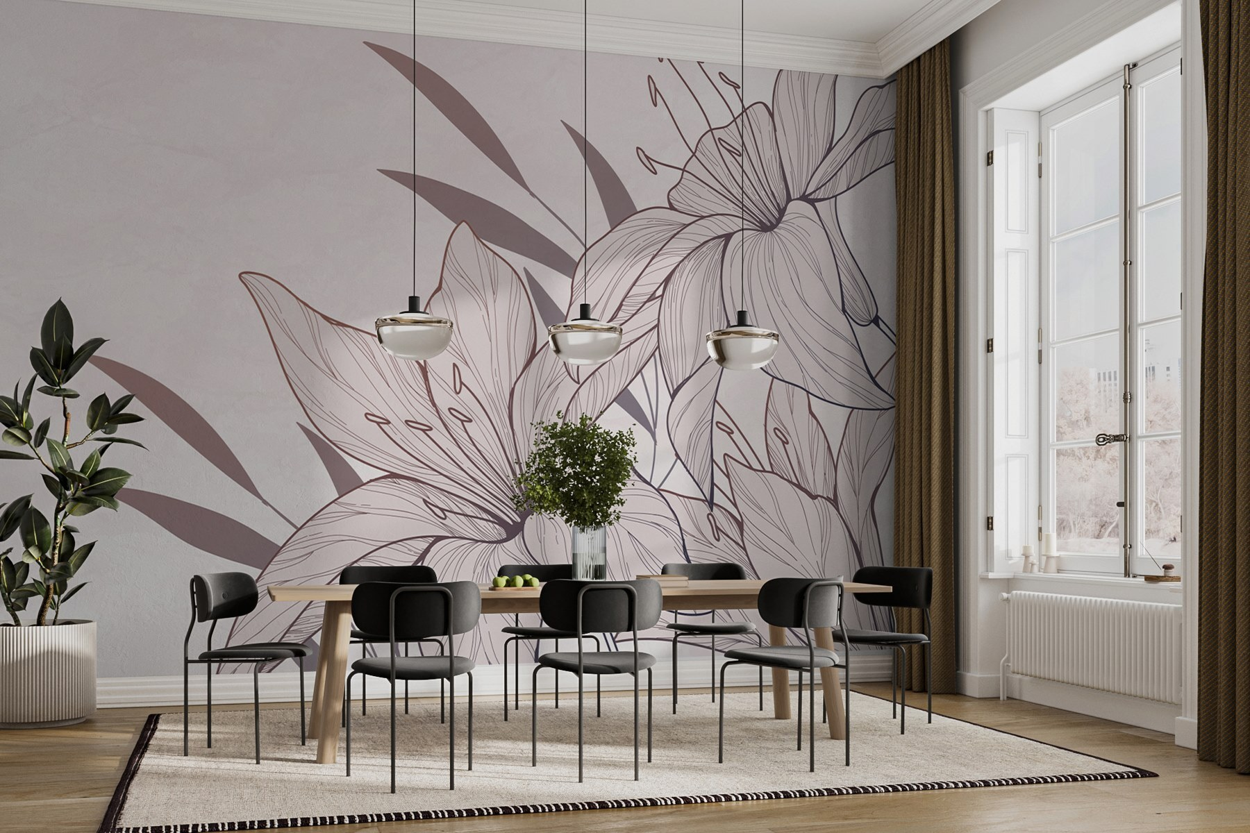Fotomurales Dibujo de flores y hojas Fotomurales Dibujo de flores y hojas