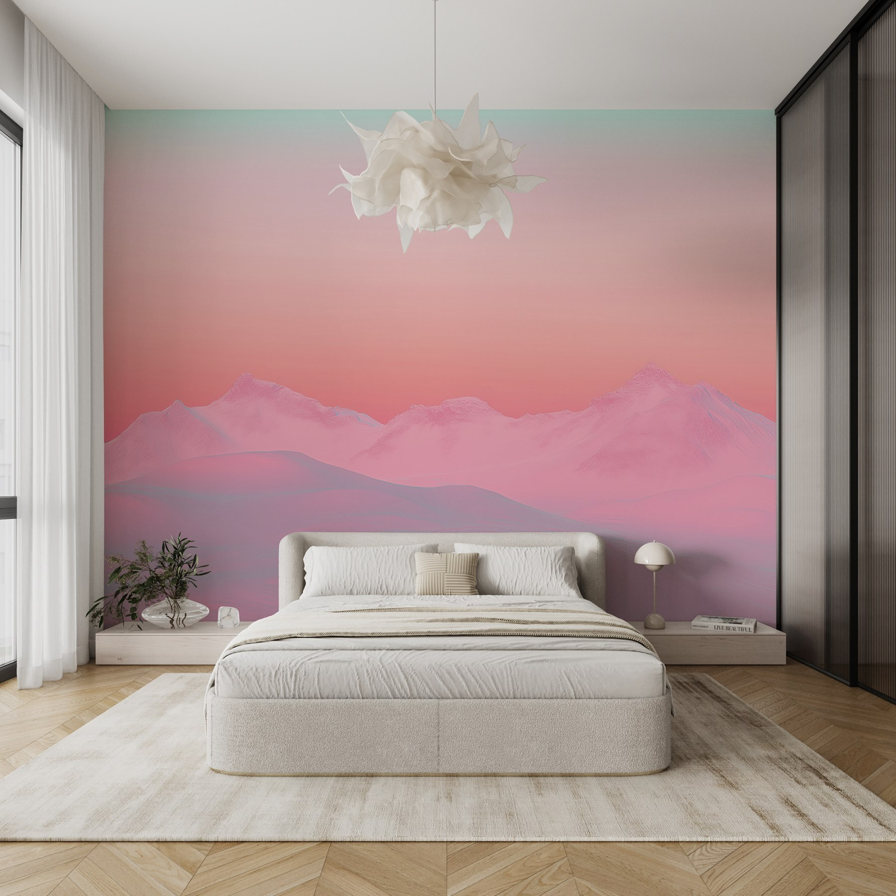 Transforma tu espacio con los murales de ensueño “Cielo rosa y azul sobre una cordillera nevada”. Imagina despertarte con esta suave mezcla de rubor y azul, creando un sereno telón de fondo que disipa el estrés. Es como un suave abrazo de la naturaleza, perfecto para esas mañanas frías con una taza de café en la mano. Ya sea tumbado en el sofá o relajándose después de un largo día, este mural susurra tranquilidad. No es sólo decoración; es una escapada, unas minivacaciones a picos pastel que invitan a soñar despierto y a la paz en cualquier habitación. ¿Quién no querría eso?