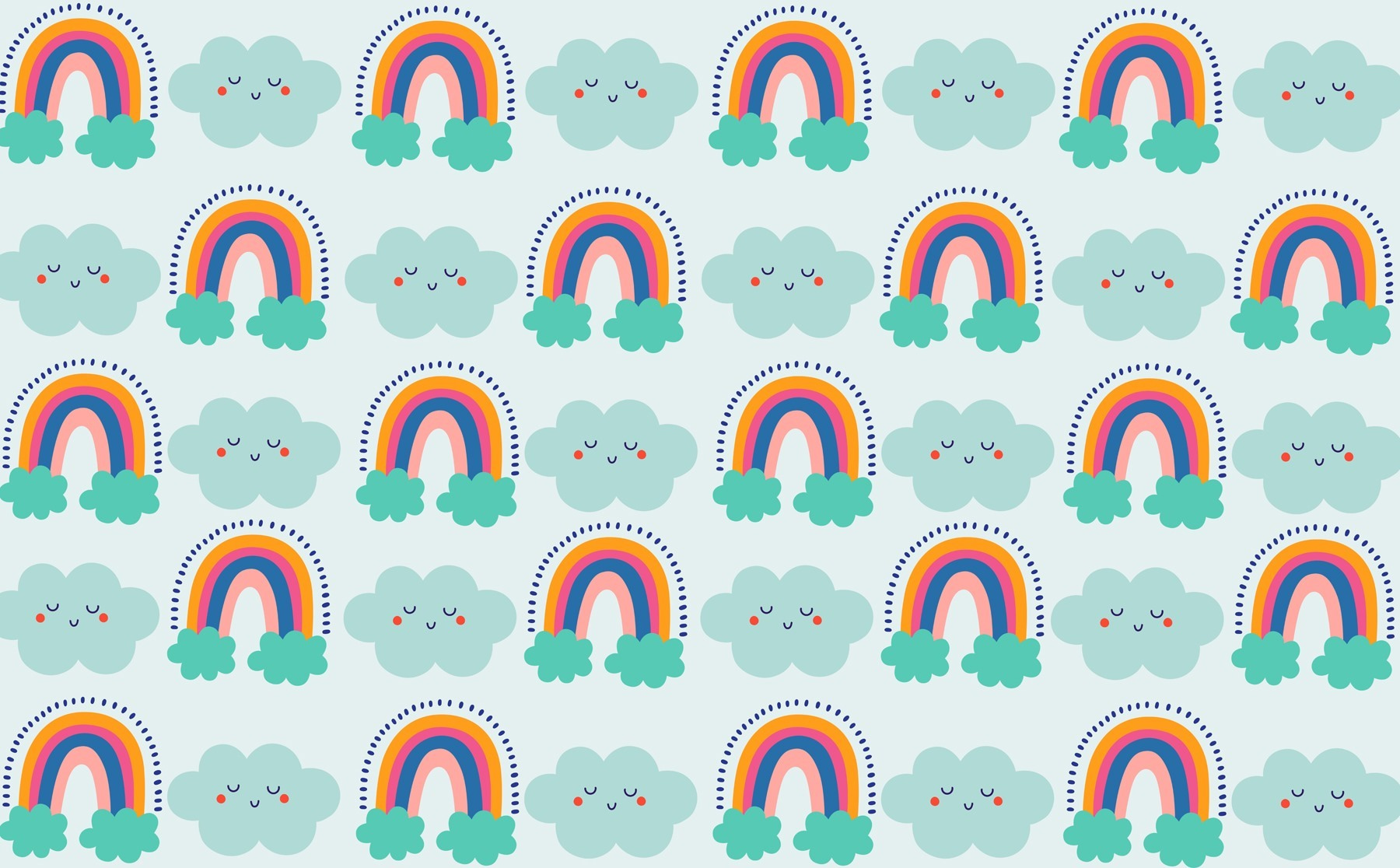 Alegra la habitación de cualquier niño con este alegre mural de nubes y arco iris, perfecto para despertar la imaginación. Imagina a los más pequeños contemplando esas bonitas y sonrientes nubes, soñando con aventuras flotantes. Los alegres colores bailan por la pared, invitando a la risa y a la creatividad. Es como invitar a un trozo de cielo al interior.