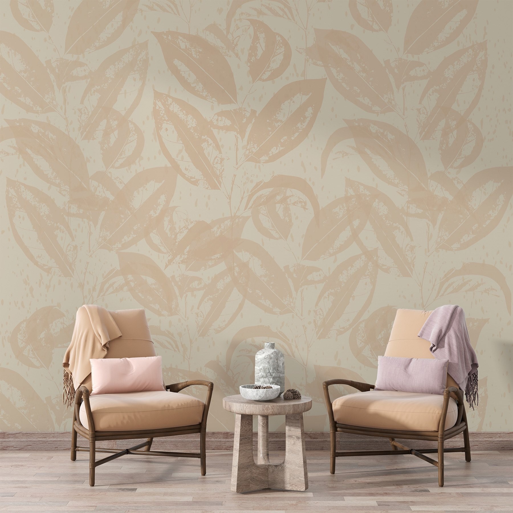 Transforme su espacio con el mural “Hojas suaves sobre un fondo suave”, donde la naturaleza se une a las vibraciones acogedoras. Imagínese entrar en una habitación que se siente como un soplo de aire fresco: ¡eso es lo que hace este mural! Las suaves y tenues hojas bailan con gracia sobre un fondo claro, creando una atmósfera relajante perfecta para esas tardes frías.