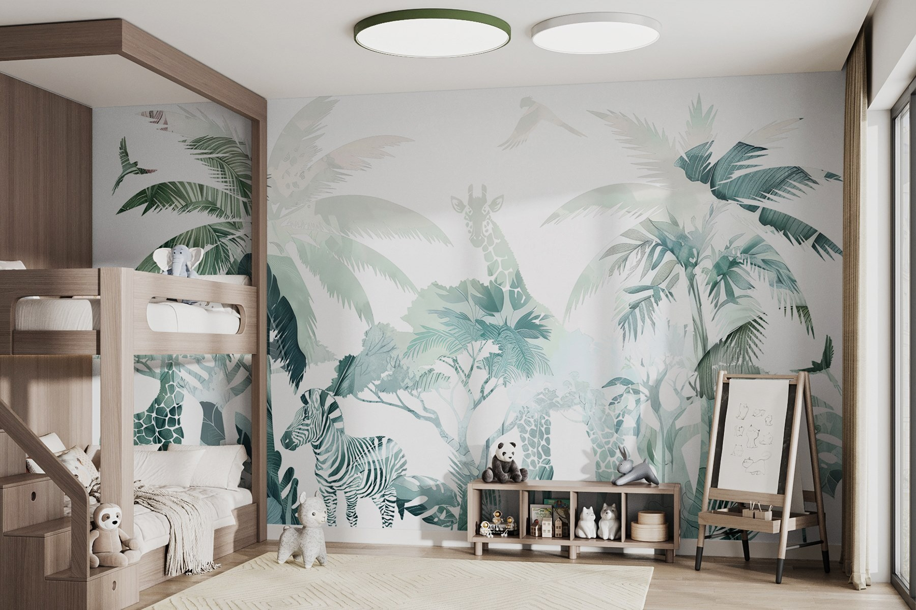 Transforma tu espacio en una escapada tranquila con este impresionante mural de pared que muestra un grupo de animales en un frondoso bosque. Imagínese paseando por una selva serena todos los días, ¿no es genial? Este mural reúne gentiles jirafas, juguetonas cebras y vibrantes palmeras, añadiendo un toque de la magia de la naturaleza directamente a su hogar. Perfecto para una acogedora sala de estar o una juguetona habitación infantil, invita a una sensación de aventura y calidez. Además, ¡piensa en lo divertido que sería explicar a tus amigos por qué hay una cebra en el pasillo! Una forma sencilla de encender la imaginación y despertar la alegría en la vida cotidiana.