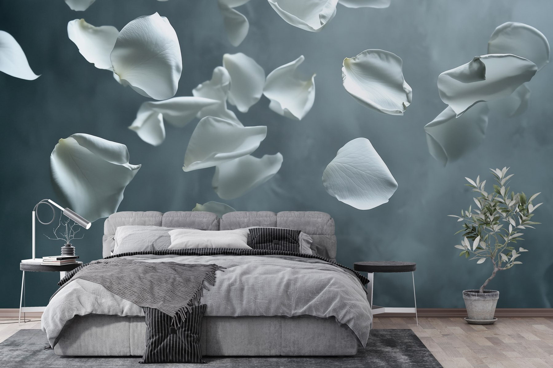 Transforme su espacio con los “Murales Pétalos blancos cayendo en el aire”. Imagínese entrar en una habitación donde los delicados pétalos parecen bailar con la brisa, creando una atmósfera serena y onírica. Es como llevar un trozo de un apacible jardín al interior, ¡sin las molestas abejas! Perfecto para una sala de estar o un rincón de lectura acogedor, este mural evoca una calma que te hace querer acurrucarte con un buen libro y una taza de té.