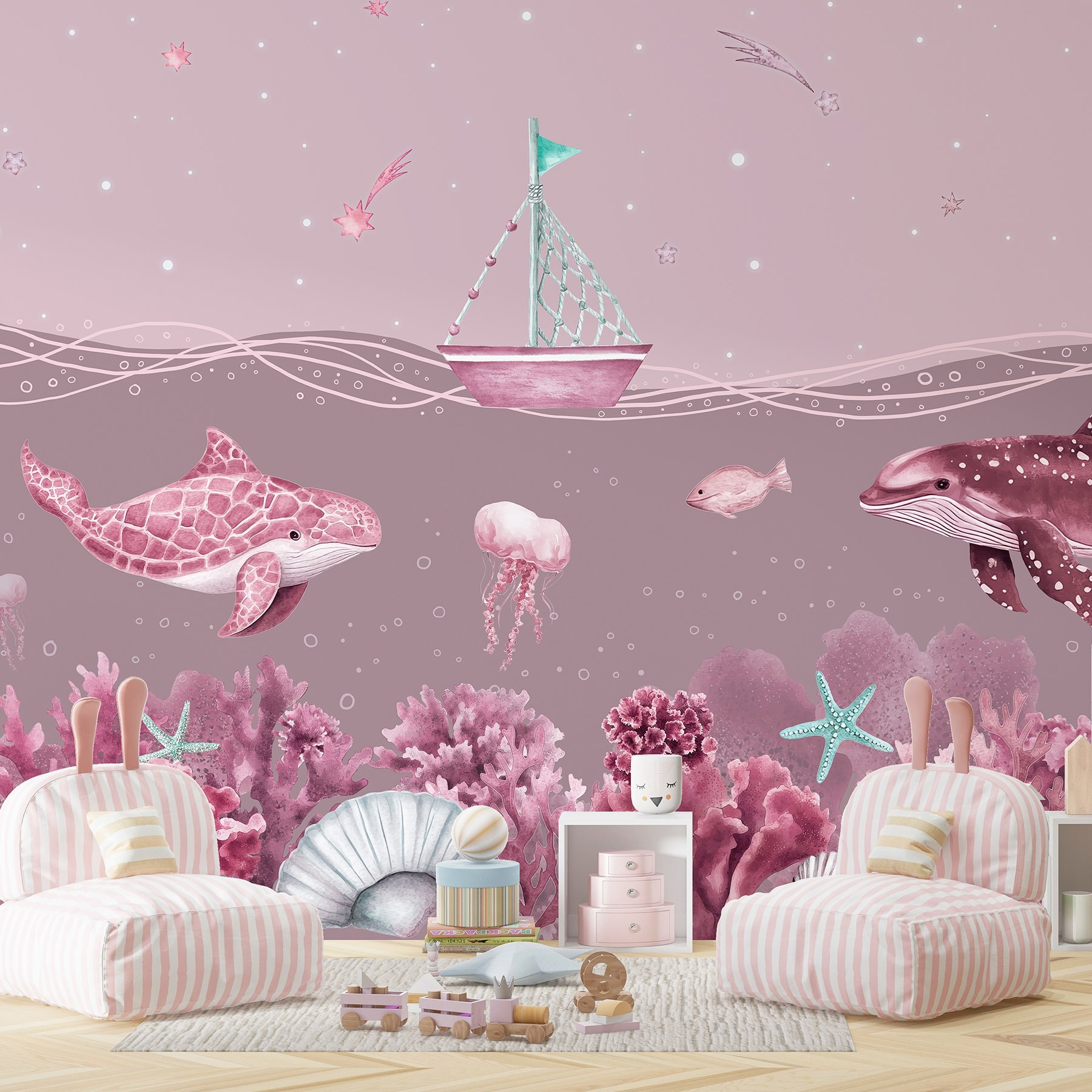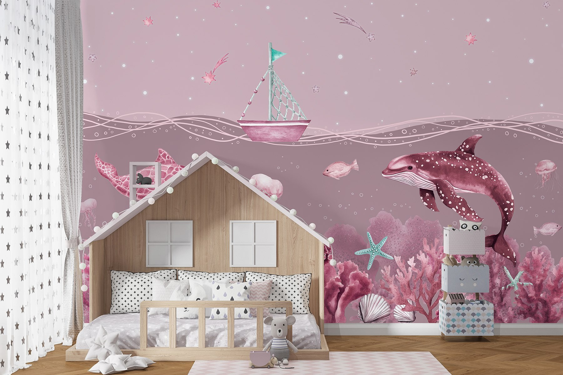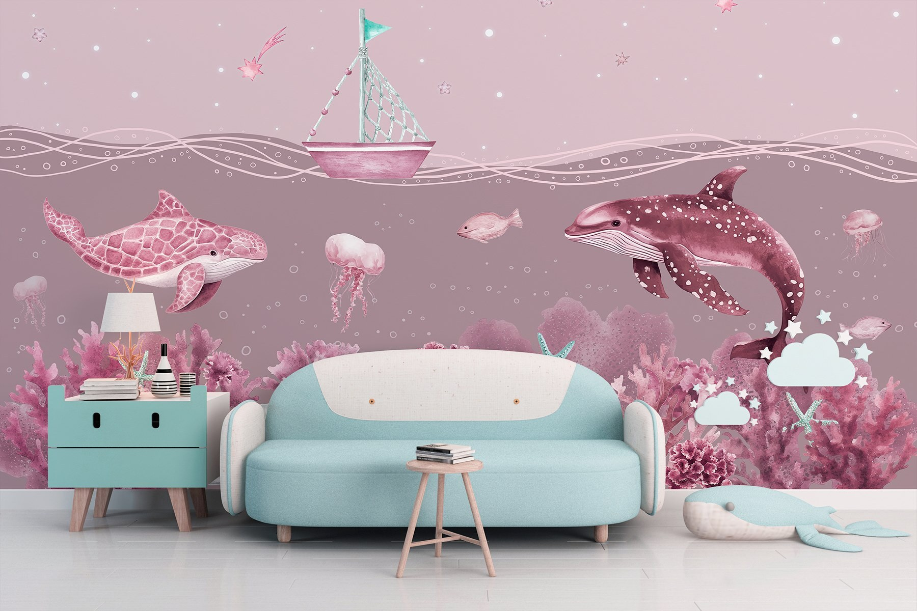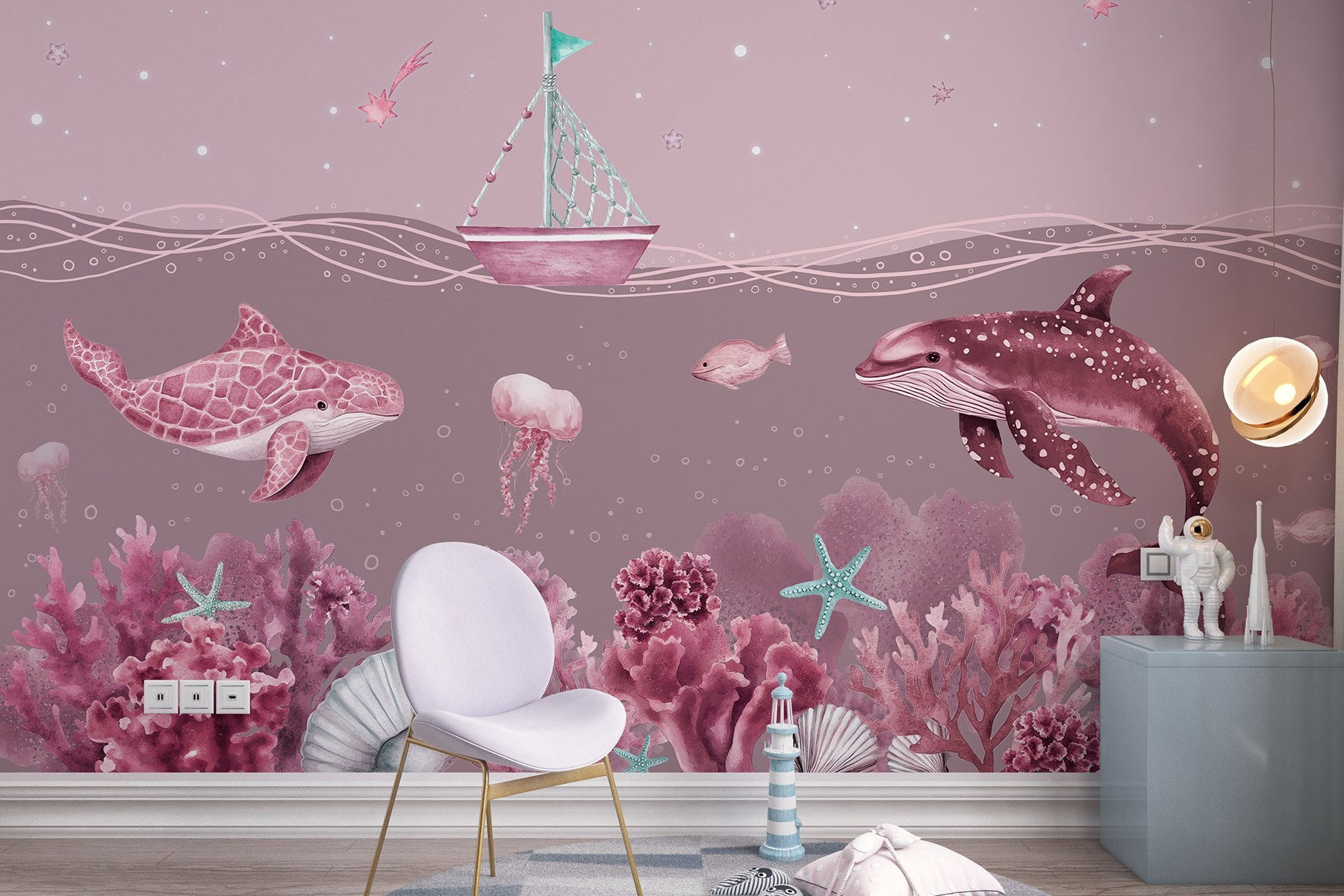 Transforma una pared aburrida en una escapada submarina con este encantador mural “Vida marina con un barco y peces”. Imagínatelo: peces vibrantes jugueteando entre corales, mientras un encantador barquito flota por encima, quizás soñando con su próxima aventura. Es como tener un pequeño océano en el salón, ¡sin la arena en los zapatos! Los colores suaves crean un ambiente tranquilo, perfecto para relajarse después de un largo día. Imagínate acurrucado con un libro, rodeado de criaturas marinas. ¿Quién necesita vacaciones cuando este mural le trae la playa a casa? ¡Sumérgete con estilo!