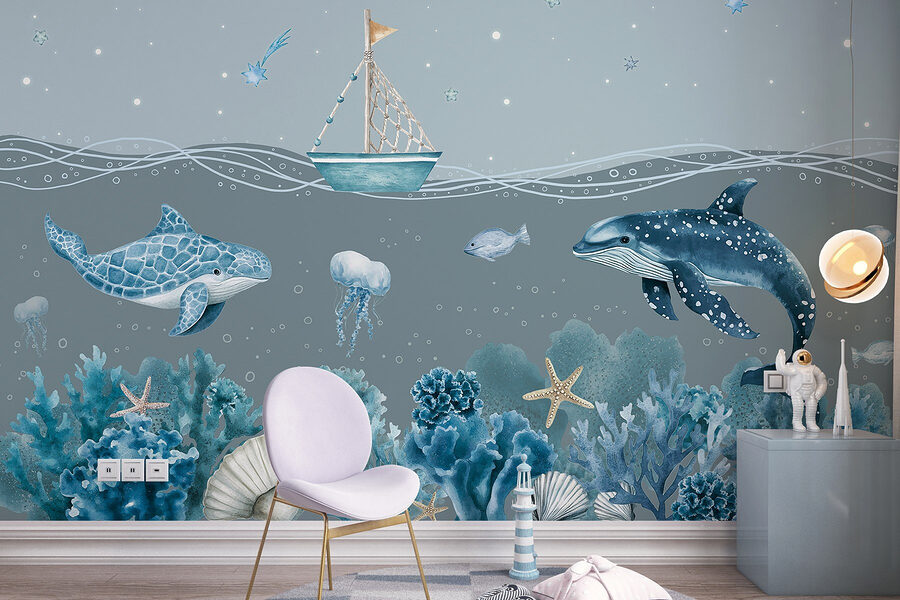 Transforme su espacio en una serena escapada submarina con el mural de pared “Sea Life”. Imagine despertarse cada día con los juguetones delfines y las suaves medusas bailando por sus paredes. Esta escena de ensueño captura un encantador barquito deslizándose por un mar tranquilo, rodeado de vibrantes corales y estrellas de mar. Es como tener un trocito del océano en casa, ¡sin el pelo salado! Perfecto para la habitación de un niño o incluso para un acogedor rincón de lectura, este mural aporta un toque de capricho y calma. Deja que los colores te inunden, creando un ambiente tranquilo que podría inspirarte a soñar despierto con aventuras en el océano.