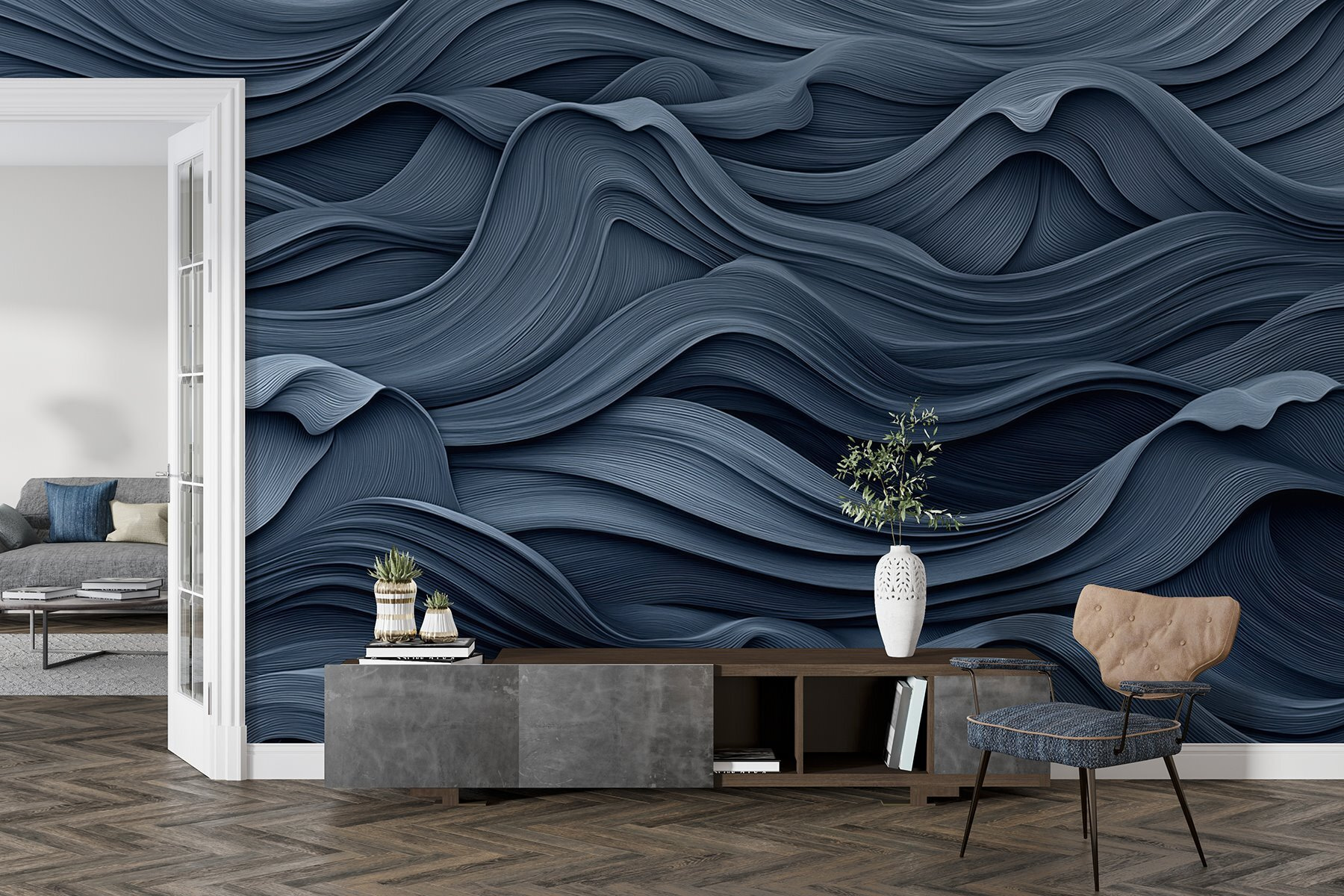 Transforme cualquier pared en una escapada de ensueño con este impresionante mural ondulado gris. Imagina entrar en tu habitación y sentir que flotas en un mar sereno de líneas suaves y arremolinadas. Es como un suave abrazo para su espacio, aportando calma y estilo. La rica textura invita al tacto, casi retándote a pasar los dedos por esas elegantes curvas. Perfecto para un acogedor rincón de lectura o un elegante salón, este mural susurra elegancia moderna. Es algo más que decoración: es una experiencia. ¿Tienes café? Coja un libro y déjese llevar por las olas.