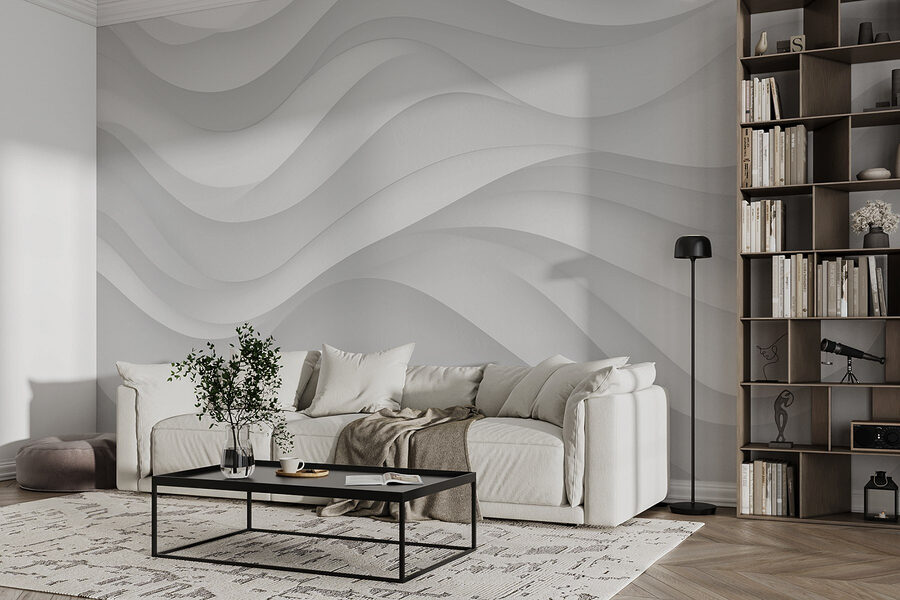 Imagínese entrar en una habitación donde las paredes parecen fluir como una suave brisa: ¡este mural hace exactamente eso! Con sus suaves ondas blancas y grises, crea una atmósfera serena que resulta contemporánea y acogedora a la vez. Es perfecto para esos momentos en los que quieres relajarte, quizás con un buen libro o una taza de té. Imagínese esto: los invitados entran, se detienen a admirar el elegante diseño y, de repente, la habitación parece una galería chic. No se trata de un simple papel pintado, ¡es toda una declaración de intenciones! Un factor sorpresa definitivo para cualquier espacio y, seamos sinceros, el telón de fondo perfecto para tu próxima foto de Instagram.