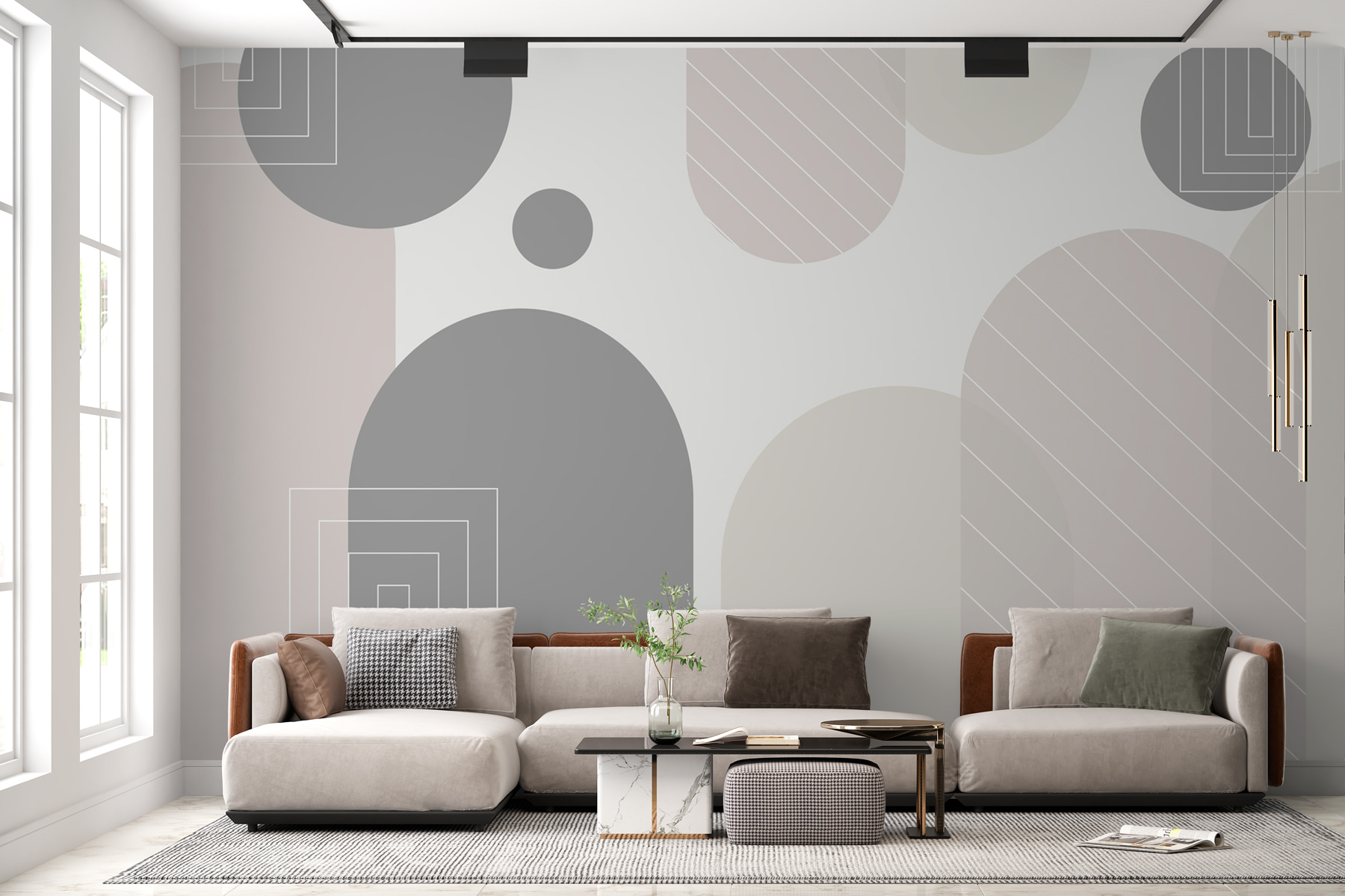 Transforme su espacio con este suave mural geométrico que susurra sofisticación. Imagínatelo ahora: un rincón acogedor bañado en suaves tonos neutros, donde cada curva y cada línea parecen bailar armoniosamente en la pared. Es como el amigo perfecto que sabe cómo animar el ambiente sin decir una palabra.