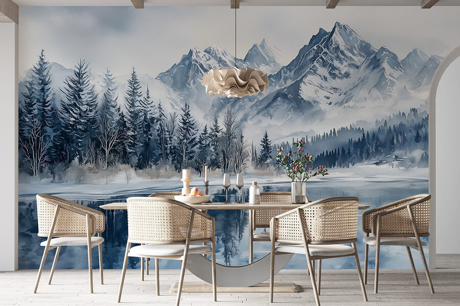 Transforme su espacio en un paraíso invernal con este impresionante mural de un lago sereno rodeado de montañas y árboles nevados. El suave efecto de acuarela invita a un ambiente tranquilo, perfecto para acurrucarse con una taza de té o fingir ser un guardabosques por un día. Imagina contemplar la luz del sol bailando sobre el agua mientras esos picos te hacen compañía. Es un trocito de naturaleza en el salón de tu casa. Además, hay algo en la nieve que hace que todo parezca fresco y tranquilo. ¿Quién no querría eso? Haz de tus paredes un lienzo de ensueño y piérdete en la belleza del invierno, ¡todo el año!