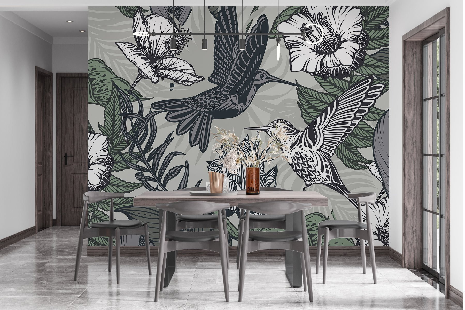 Transforme cualquier espacio en una escapada serena con el mural de pared “Pájaro volando sobre flores”. Imagínatelo: pájaros vibrantes revoloteando graciosamente en medio de una flora exuberante y floreciente, invitando a la naturaleza a entrar en tu casa. Es como tener un trocito de paraíso en la pared, ¿quién no lo querría?