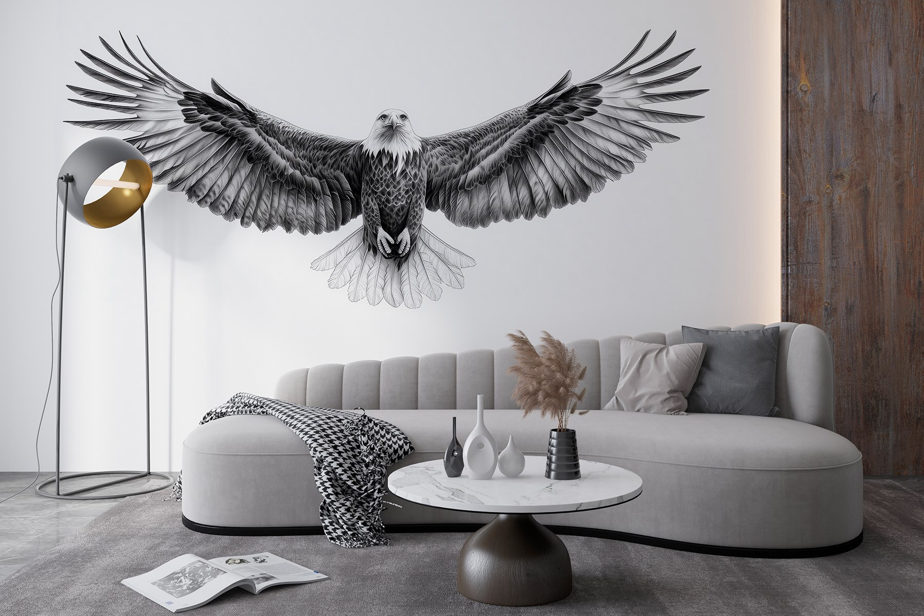 Transforme cualquier habitación con este impresionante mural en blanco y negro con un majestuoso pájaro en vuelo. Imagínese entrar en su espacio y ser recibido por las elegantes alas extendidas, invitando a una sensación de libertad y aventura. Es como llevar un trozo de naturaleza al interior, ¡sin tener que preocuparse de limpiar las plumas! Perfecto para un tranquilo rincón de lectura o para una atrevida declaración de intenciones en un salón, esta pieza despierta la conversación y la curiosidad. Cada mirada a este mural es un recordatorio para desplegar tus propias alas y abrazar la belleza que te rodea. Además, combina sin esfuerzo con casi cualquier combinación de colores. Así que todos salimos ganando.