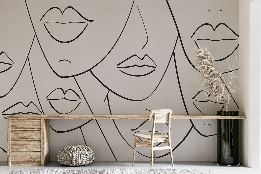 Transforme su espacio con este cautivador mural de pared que presenta un grupo de caras abstractas, cada una con labios dibujados de forma única en impactante blanco y negro. No es sólo decoración, es un tema de conversación. Imagine entrar en una habitación y ser recibido por estas intrigantes expresiones, cada una contando una historia diferente: ¿cuál es su ambiente, qué secretos guardan?