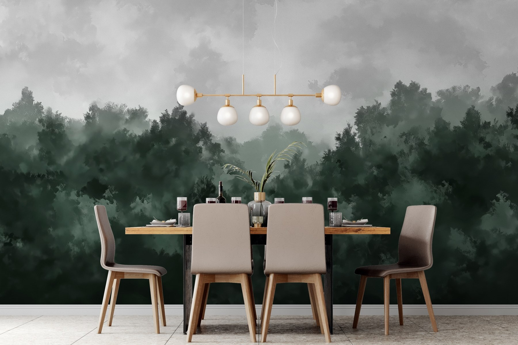 Transforme cualquier habitación en una escapada serena con este impresionante mural de pared “Bosque brumoso”. Imagine entrar en su espacio y ser recibido por el suave susurro de los árboles envueltos en niebla. Es como entrar en una acogedora naturaleza salvaje, donde cada mirada invita a la tranquilidad. Los verdes profundos y los grises suaves crean un ambiente calmante, perfecto para relajarse después de un largo día. O imagínese una reunión con amigos: este mural suscitará conversaciones sobre la belleza de la naturaleza. Es más que decoración, es un estado de ánimo. Lleve un toque de la naturaleza al interior y deje que sus paredes respiren vida.