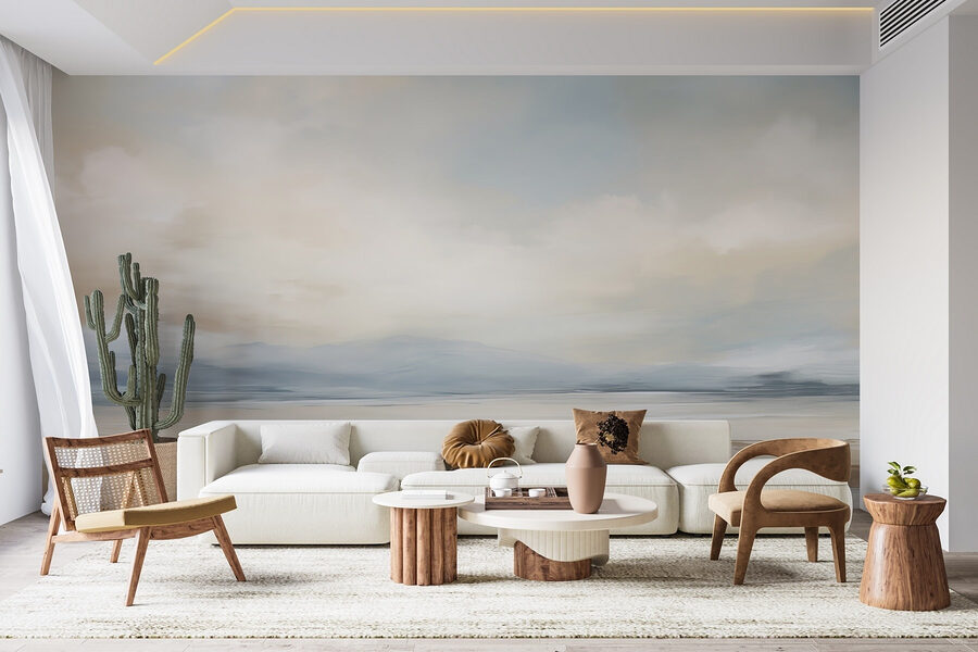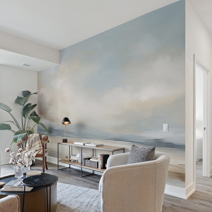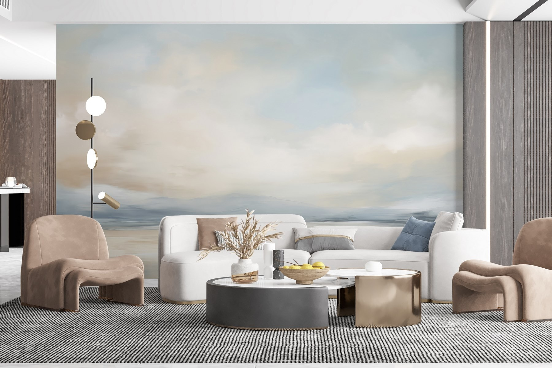 Transforme su espacio con este sereno mural de pared, “Paisaje con una masa de agua y nubes”. Imagínese entrar en una habitación donde los colores calmantes susurran tranquilidad y las suaves nubes flotan sobre su cabeza. Este mural le transporta a una escapada de ensueño junto al mar, perfecto para cuando no puede disfrutar de las vistas al mar en casa. Imagínese tomando un café, contemplando este vasto y apacible paisaje, y sintiendo cómo desaparece su estrés. Es como unas minivacaciones todos los días. Ideal para una sala de estar o un rincón acogedor, invita a la relajación, la conversación e incluso a soñar despierto. ¿Quién no querría eso?