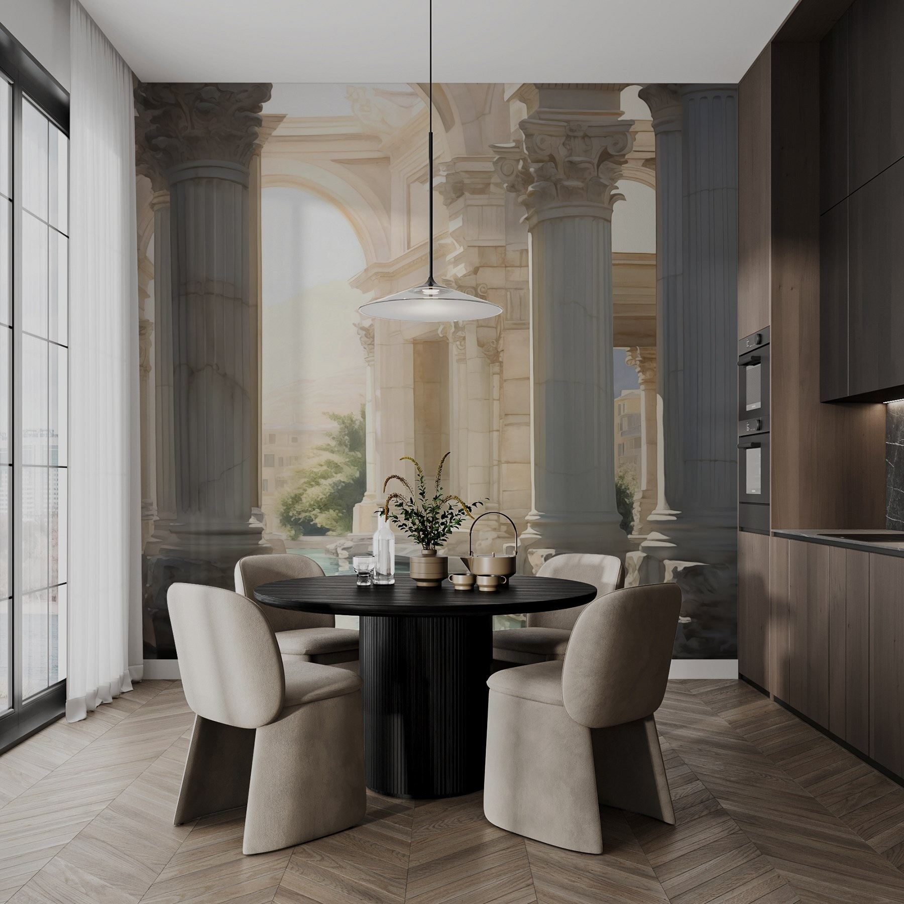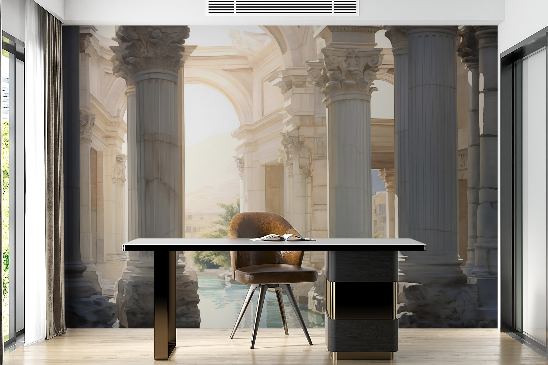 Transforme cualquier espacio en una escapada serena con este impresionante mural que presenta una tranquila escena acuática enmarcada por grandes columnas. Imagínese entrar en su habitación y sentir que ha entrado en un oasis de ensueño, donde la luz del sol baila sobre el agua y los detalles arquitectónicos invitan a la curiosidad. Esta pieza susurra historias de antiguas maravillas y pacíficos retiros, por lo que es perfecta para un acogedor salón o un tranquilo dormitorio. Es como unas minivacaciones cada vez que la miras, ¿quién no querría eso? Perfecto para los amantes de la decoración única.