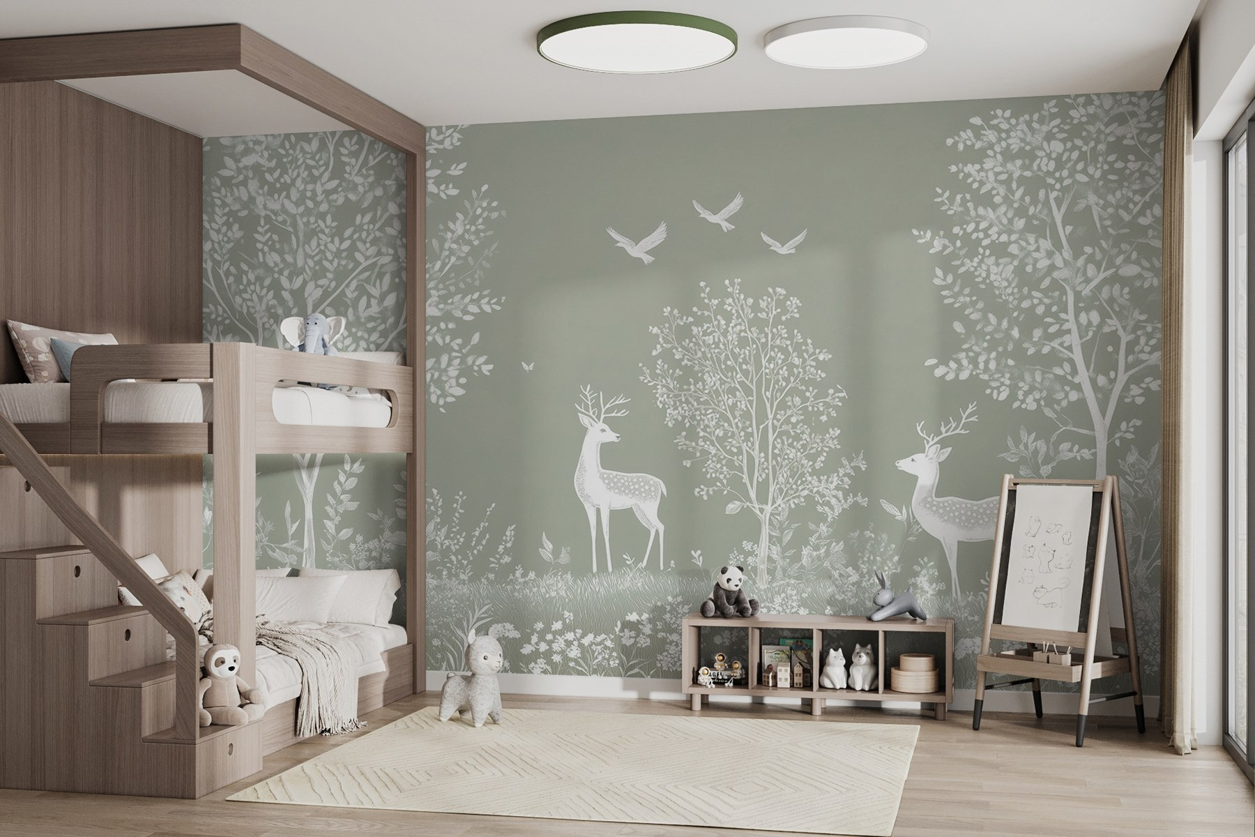 Imagine que entra en un bosque sereno donde la suave belleza de la naturaleza le invita a hacer una pausa. Este mural, con elegantes ciervos blancos y pájaros juguetones entre frondosos árboles, hace exactamente eso: transforma cualquier habitación en un refugio relajante. Los tonos suaves crean una sensación de ligereza, por lo que es perfecto para espacios acogedores o un rincón de lectura tranquilo. Imagínate tomando el té mientras sueñas con aventuras en el bosque o escuchas el susurro de las hojas. Es como llevar un trozo de naturaleza al interior, ¡menos los mosquitos! Una forma sencilla de añadir un poco de fantasía y tranquilidad a la vida cotidiana. Perfecto para los amantes de la naturaleza o para cualquiera que necesite un poco de evasión.
