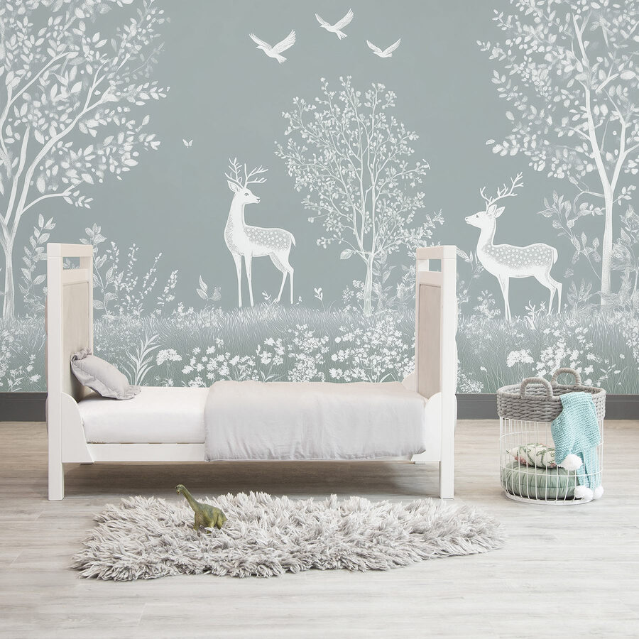 Transforme su espacio en una escapada serena con este encantador mural de pared que muestra gráciles ciervos blancos deambulando por un bosque suave y frondoso. Imagina que entras en tu habitación y te sientes como si hubieras entrado en un bosque de ensueño lleno de suaves susurros de la naturaleza. Los delicados pájaros que revolotean por encima añaden un toque de fantasía, convirtiéndolo en el telón de fondo perfecto para veladas acogedoras o mañanas inspiradoras. Es como tener un refugio de paz en casa. Ya sea tomando el té o leyendo un libro, este mural invita a esos dulces momentos de calma. Además, es un gran tema de conversación: ¿a quién no le gustaría charlar sobre su bosque secreto?