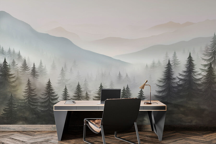 Imagínese adentrándose en un bosque sereno, donde la niebla baila alrededor de imponentes árboles y las montañas se perfilan suavemente en la distancia. Este mural, “Foggy Landscape with Trees and Mountains” (Paisaje brumoso con árboles y montañas), lleva esa evasión de ensueño directamente a su hogar. Es perfecto para un acogedor rincón de lectura o un dormitorio zen, que invita a la calma. Imagínate relajándote aquí después de un largo día, tal vez con una taza de té, mientras la naturaleza te susurra dulces palabras a través de la niebla. Los tonos suaves añaden un toque de elegancia, haciendo que su espacio se sienta como un pequeño trozo de paraíso. Con este mural, transformar sus paredes en un refugio tranquilo está a un paso.