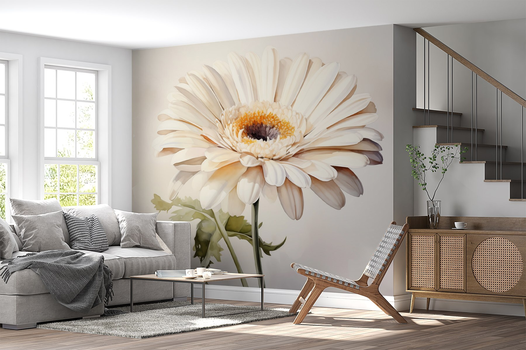 Imagínese entrar en una habitación adornada con “Murales de pared Flor blanca con centro amarillo”. Este impresionante mural de acuarela lleva la delicada belleza de la naturaleza directamente a su pared. ¿Los suaves pétalos blancos y el alegre centro amarillo? ¡Pura felicidad! Es como si la primavera decidiera vivir en el interior, sin necesidad de riego.